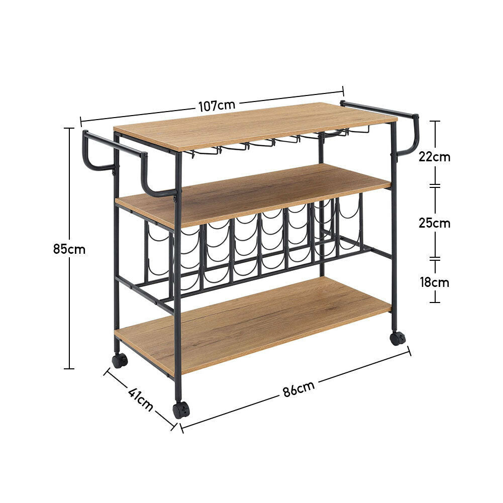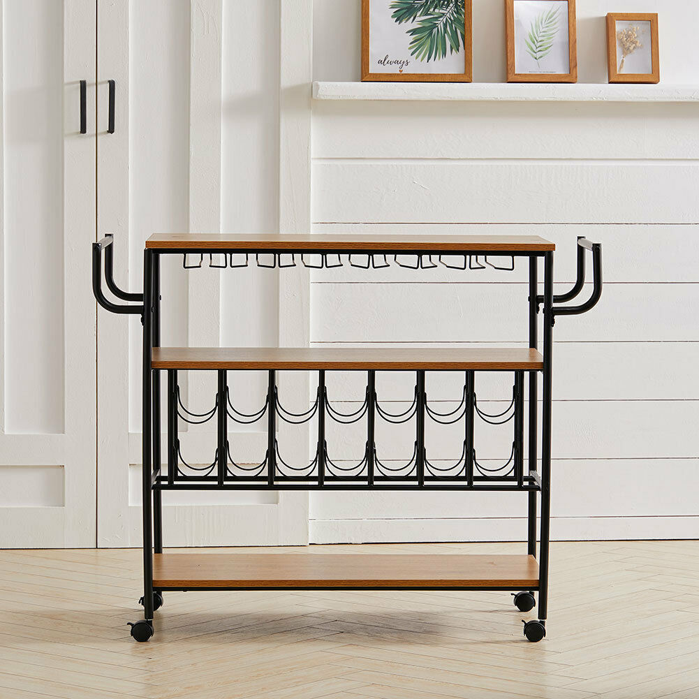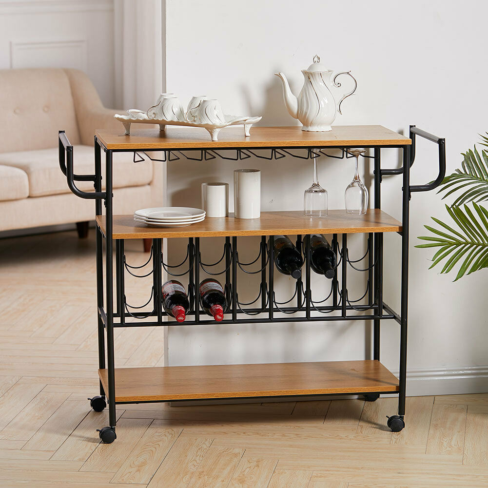 Large 3 Tier Drinks Trolley Home Bar Wine Glass Shelf Storage Rack Serving Cart