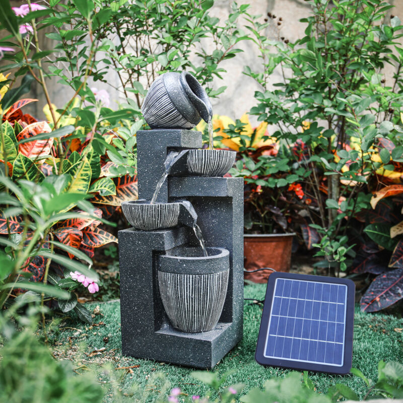Large 4 Tier Bowl Solar LED Water Feature Outdoor Fountain Garden Patio Decor