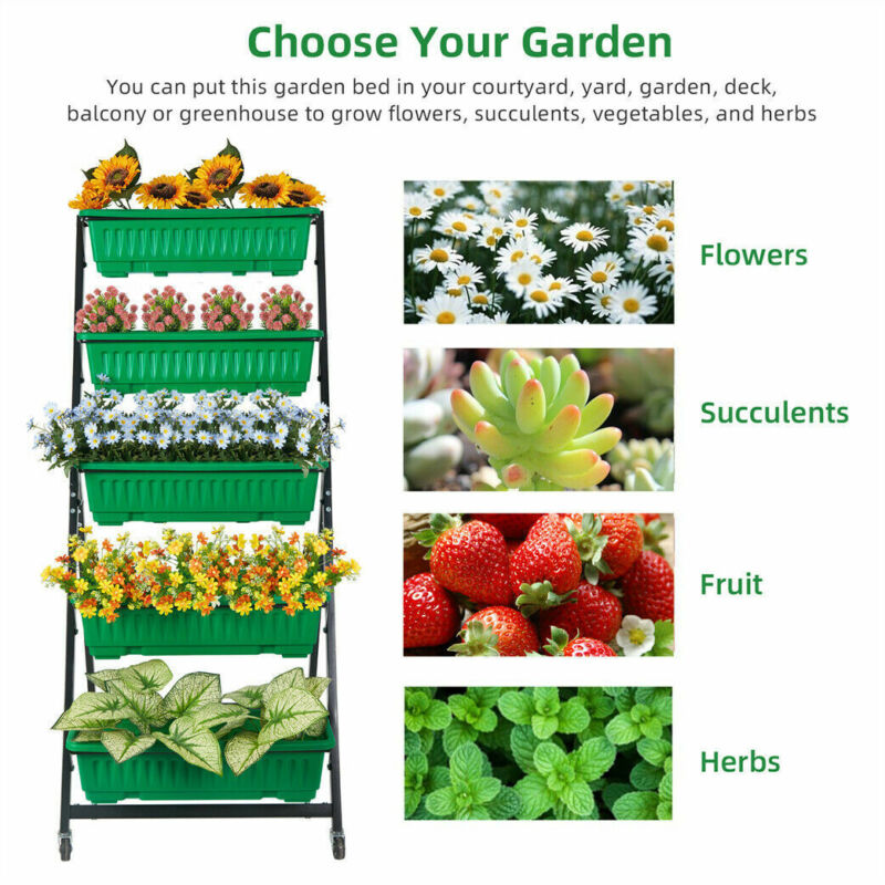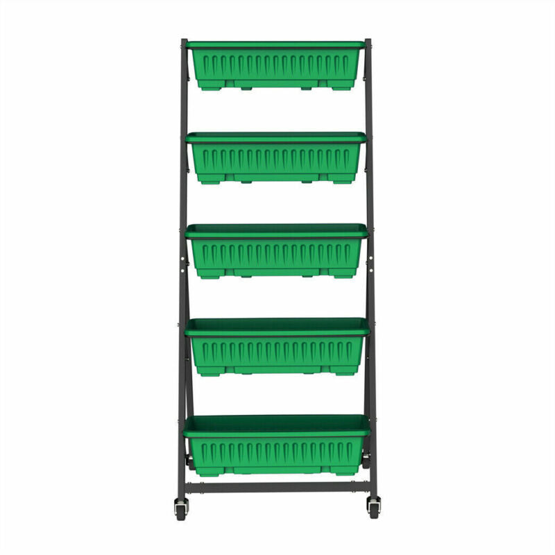 Large 5-Tier Vertical Garden Raised Bed Hunter Green Flower Planter Boxes Moving