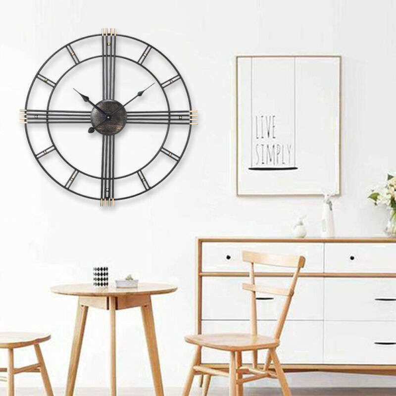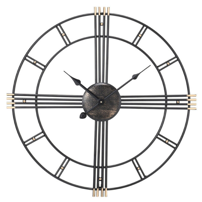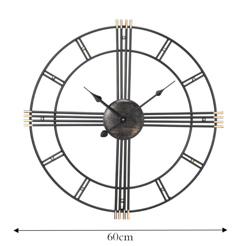 Large 60cm Wall Clock Metal Round Living Room Office Open Face Skeleton Clock