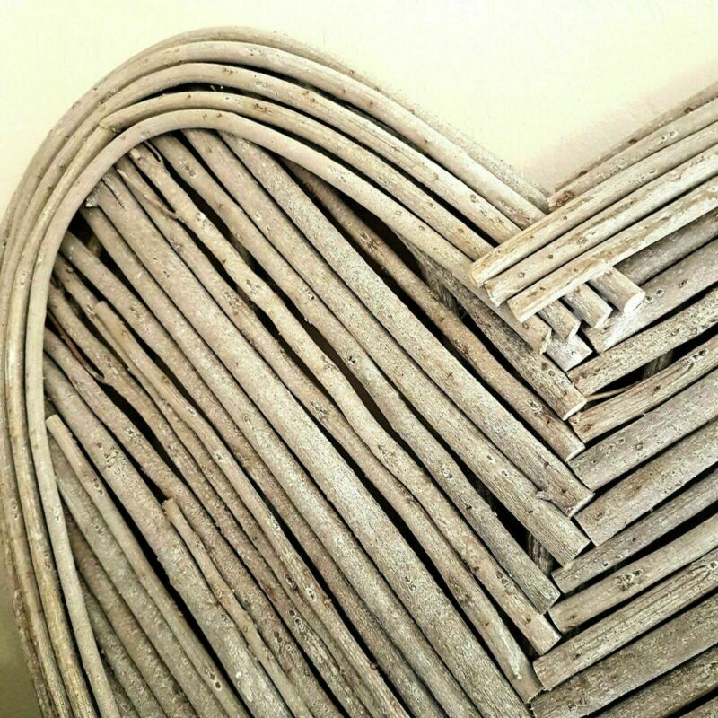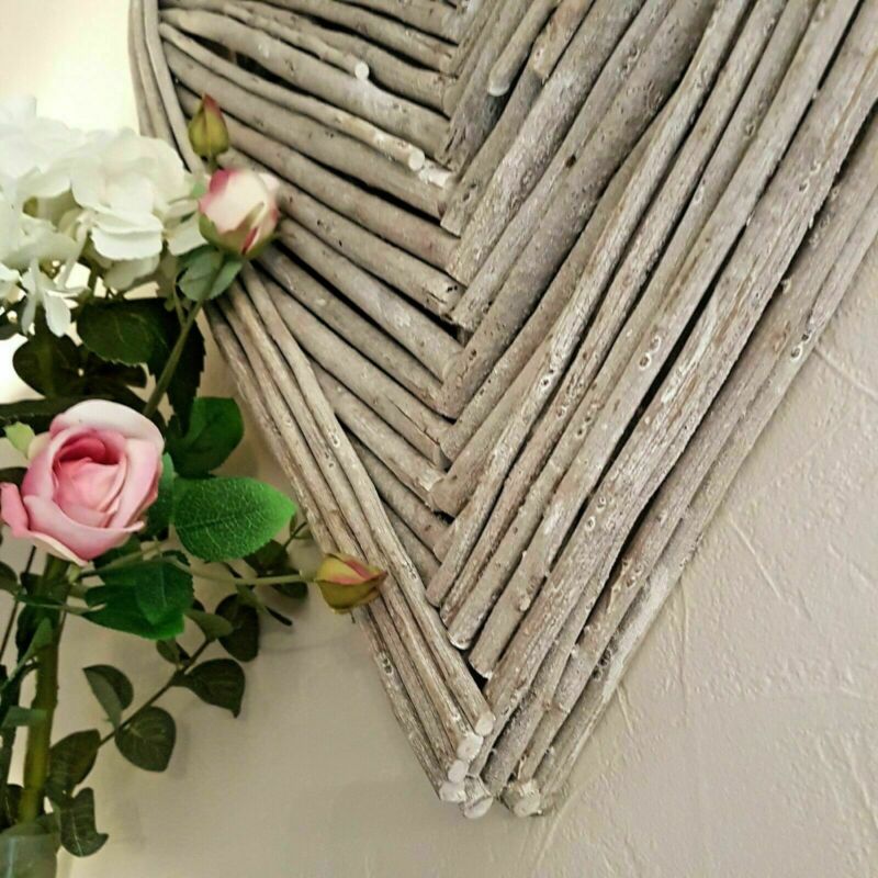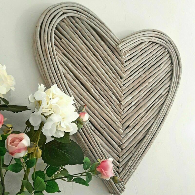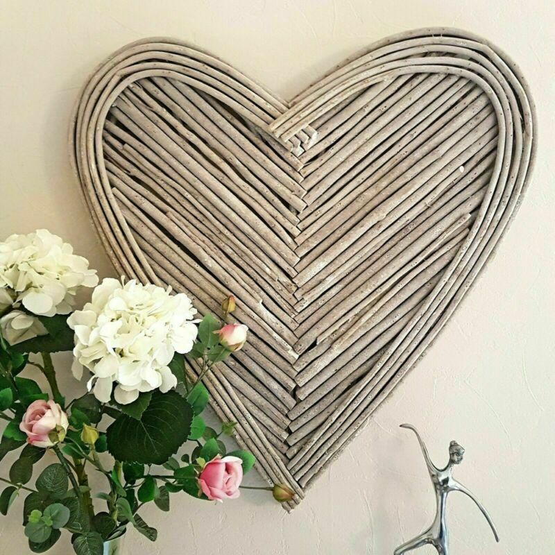 Large 70cm Washed Grey Brown Wicker Heart Hanging Rustic Display Wall Home Art