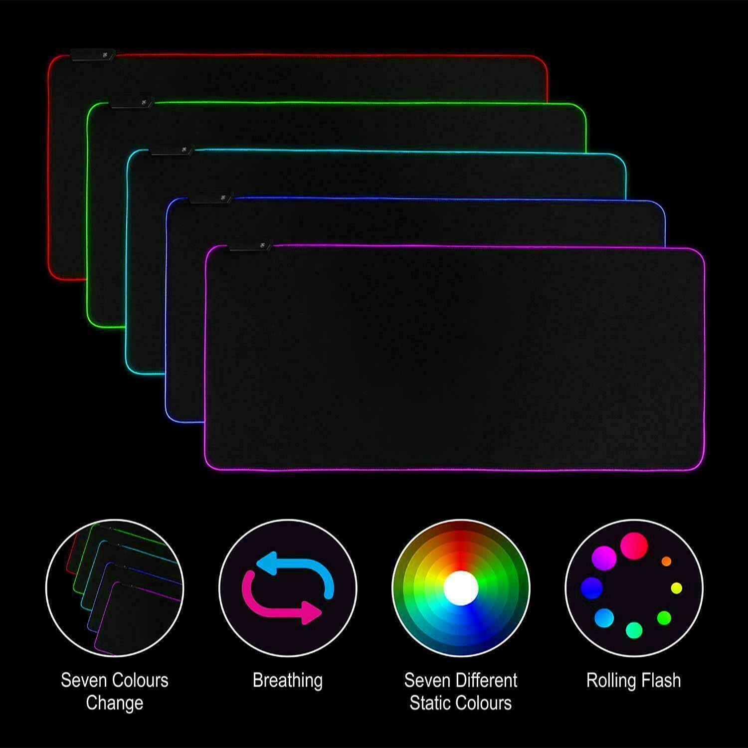 Large 80*30cm Anti-Slip RGB LED Gaming Mouse Mat for Desk PC Laptop Keyboard Pad