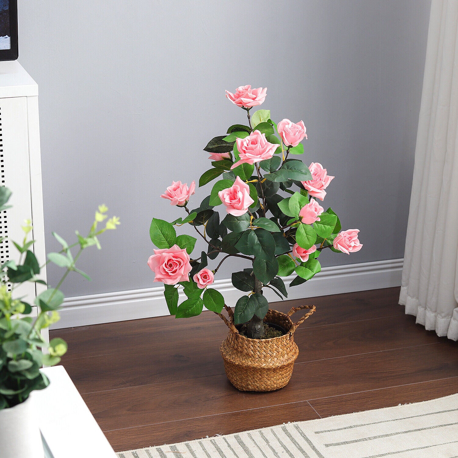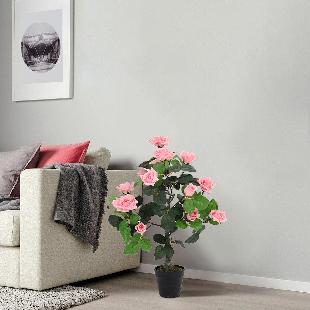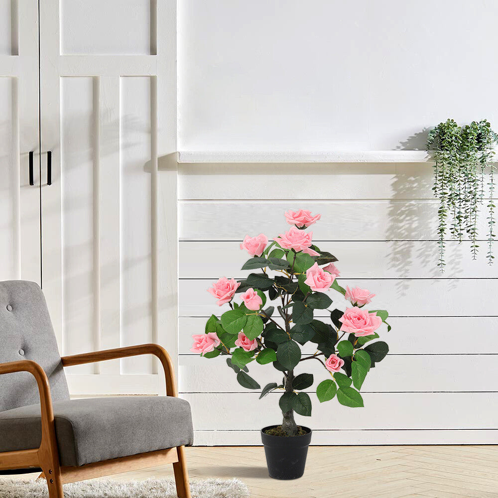 Large Artificial Pink Rose Flower Tree Realistic Fake Plant In/Outdoor Home Deco