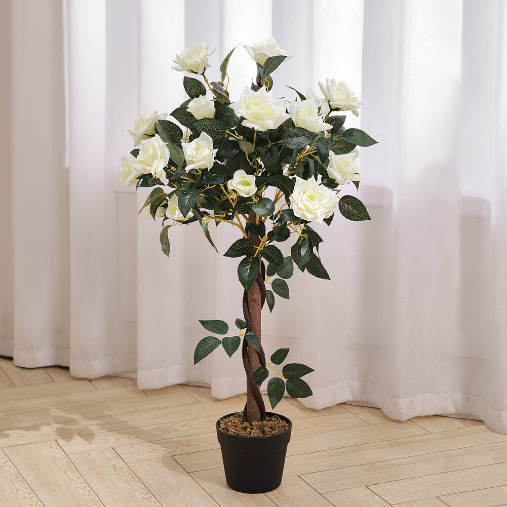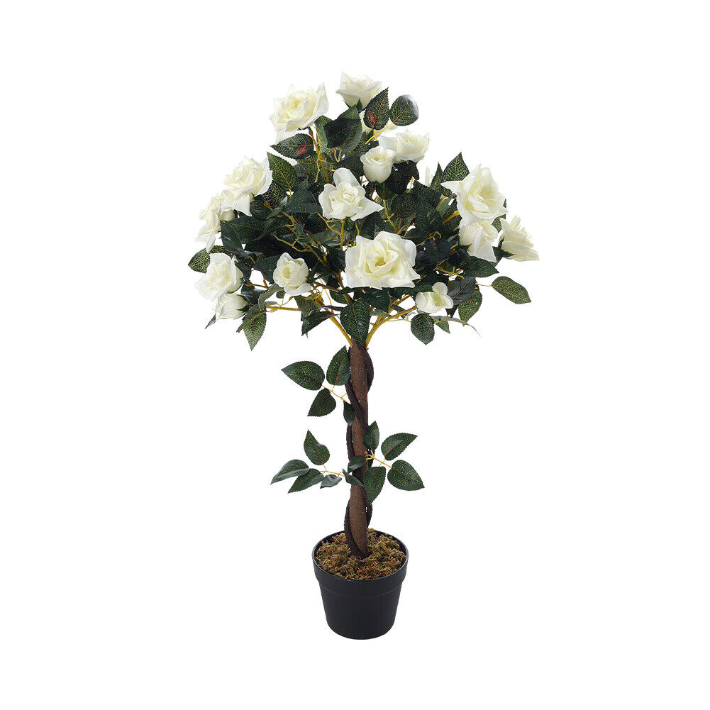 Large Artificial White Rose Tree in Pot Flower Plant Outdoor Home Office Decor