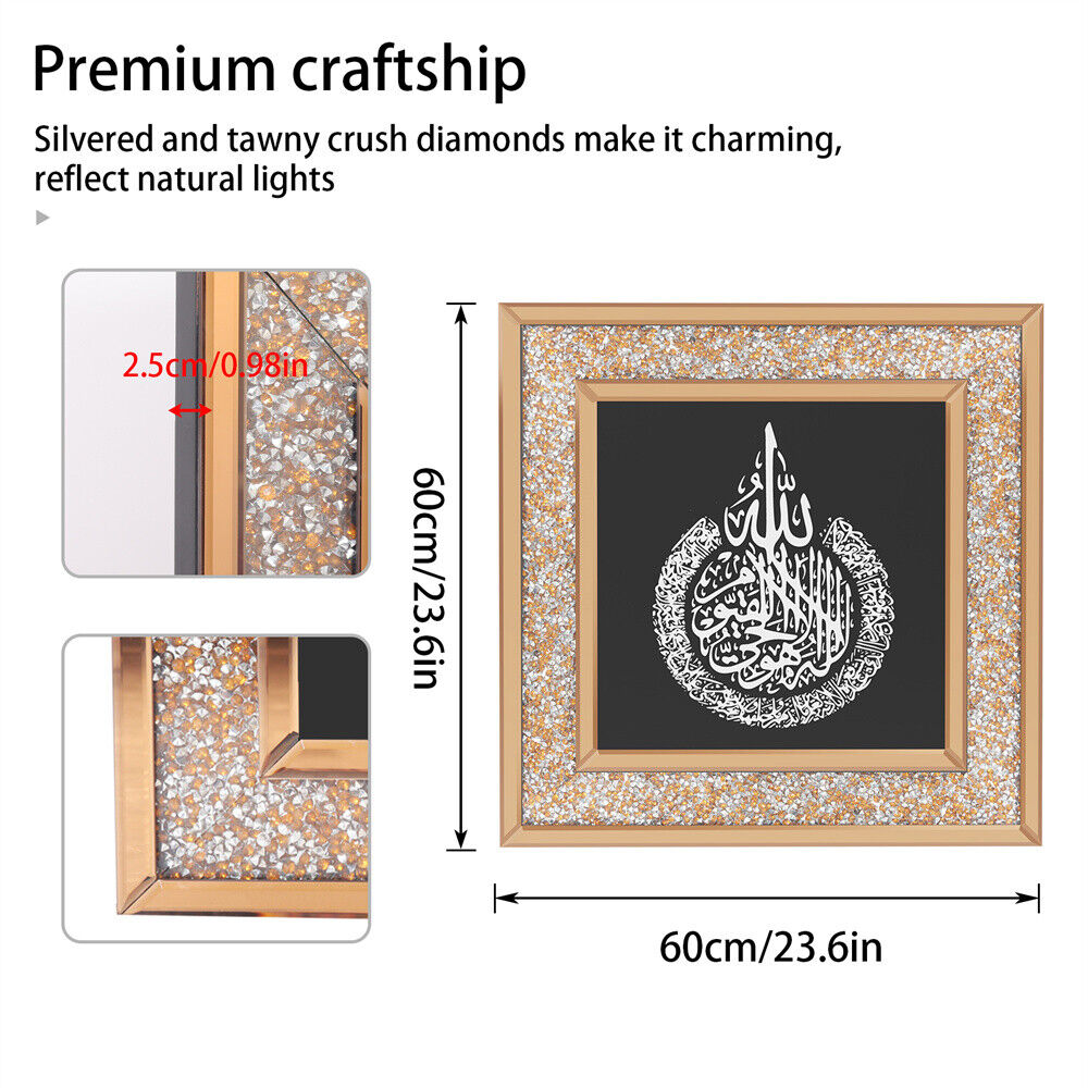 Large Ayatul Kursi Sparkle Crush Diamond Islamic Wall Art Arabic Calligraphy Dec