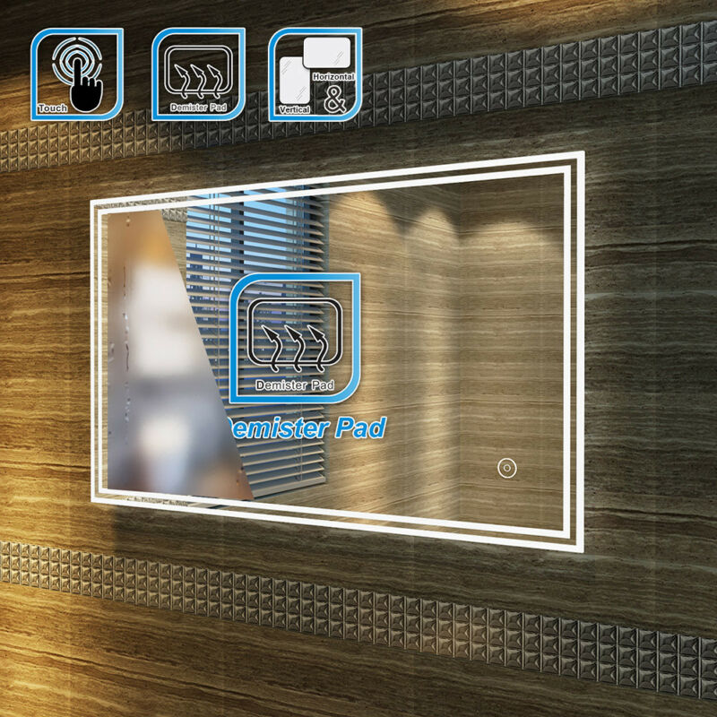 Large Bathroom Wall Mirror with LED Lights DEMISTER Touch Sensor Rectangular