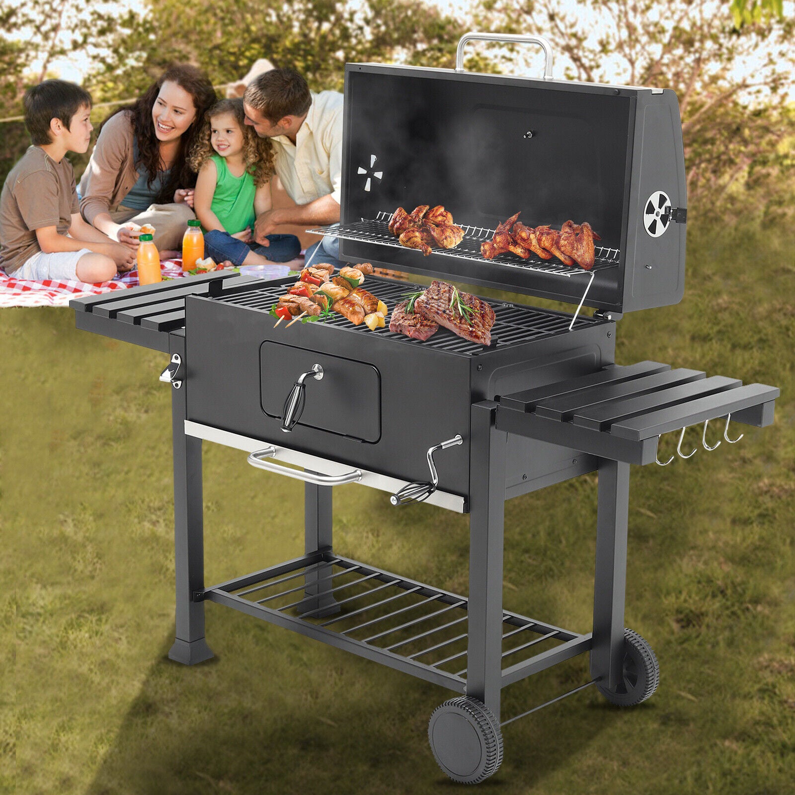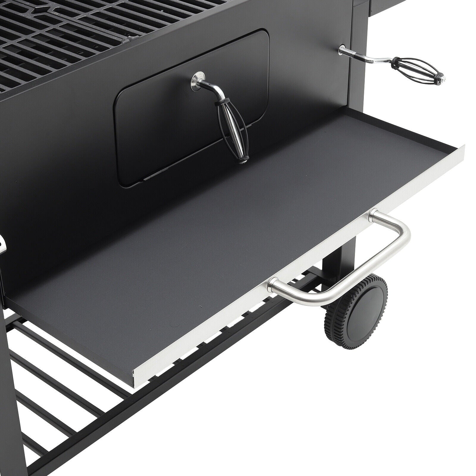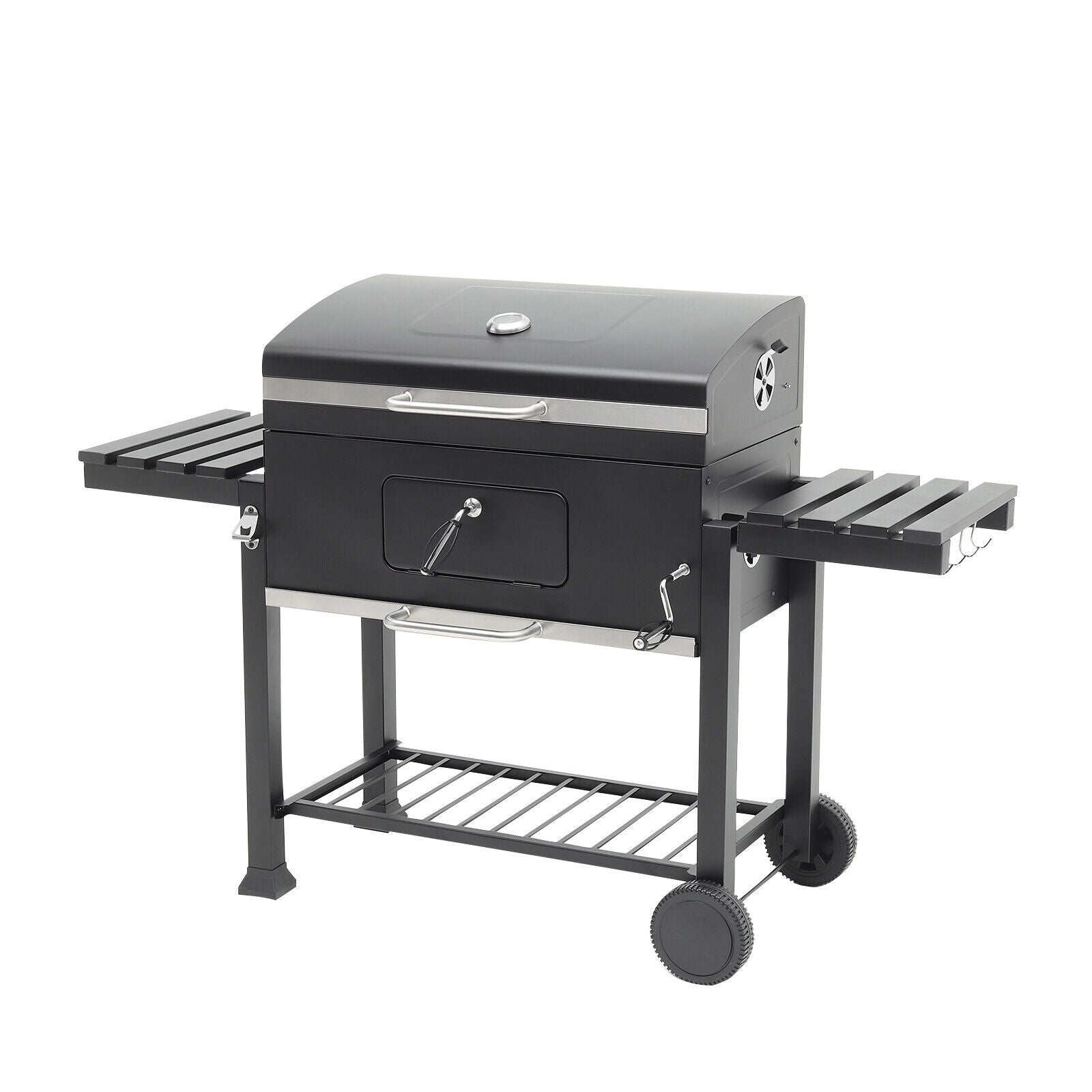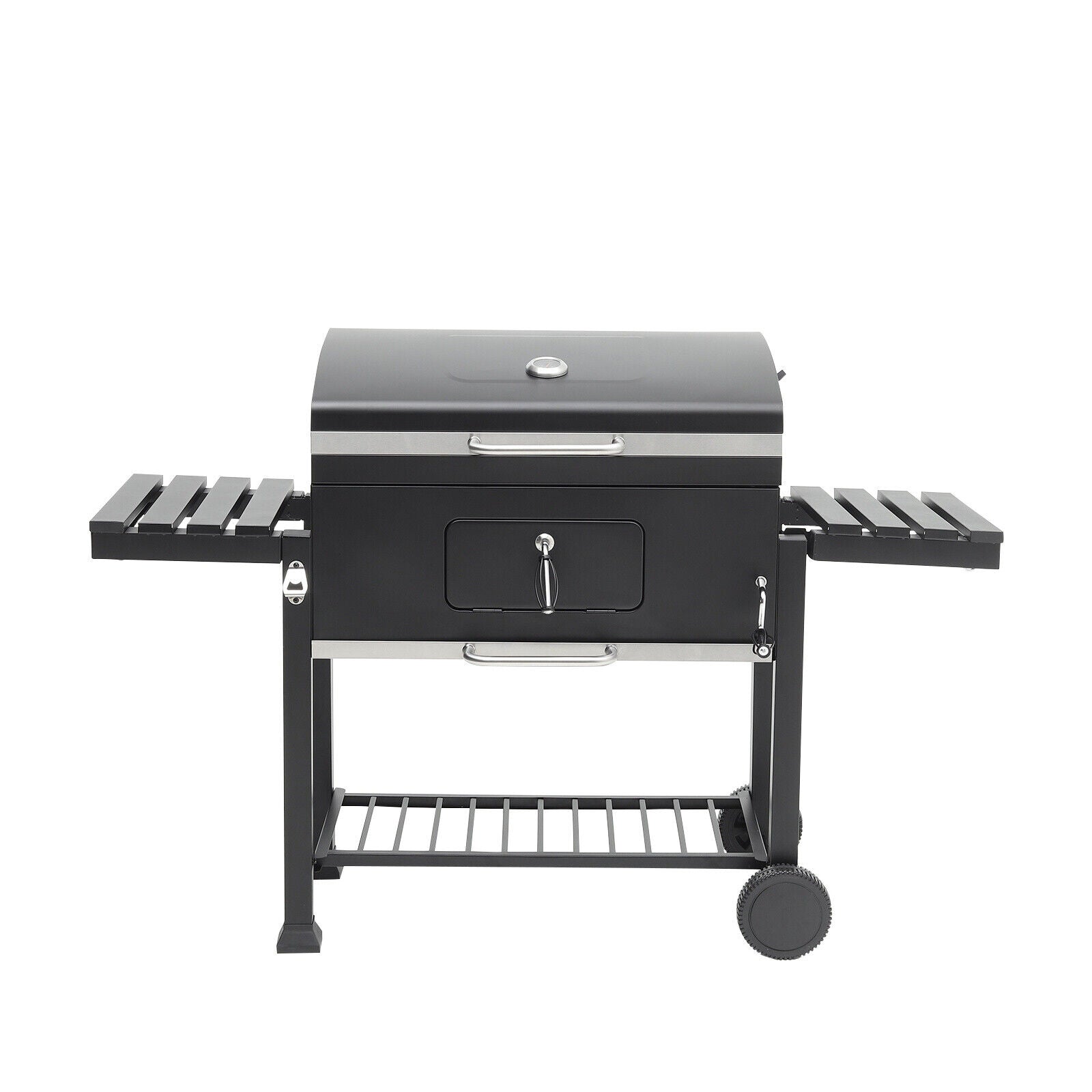 Large BBQ Trolley Two Arm Garden Smoker Charcoal Grill Barbecue Side Shelf Wheel