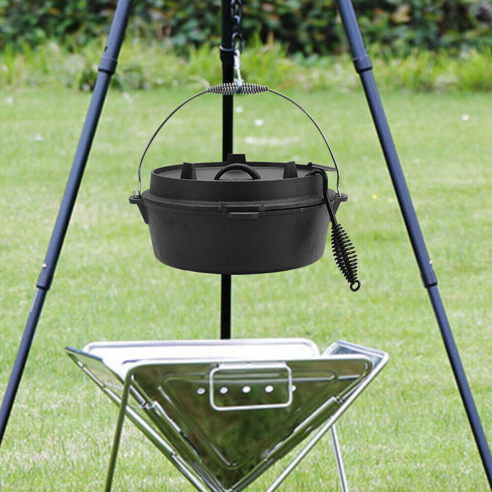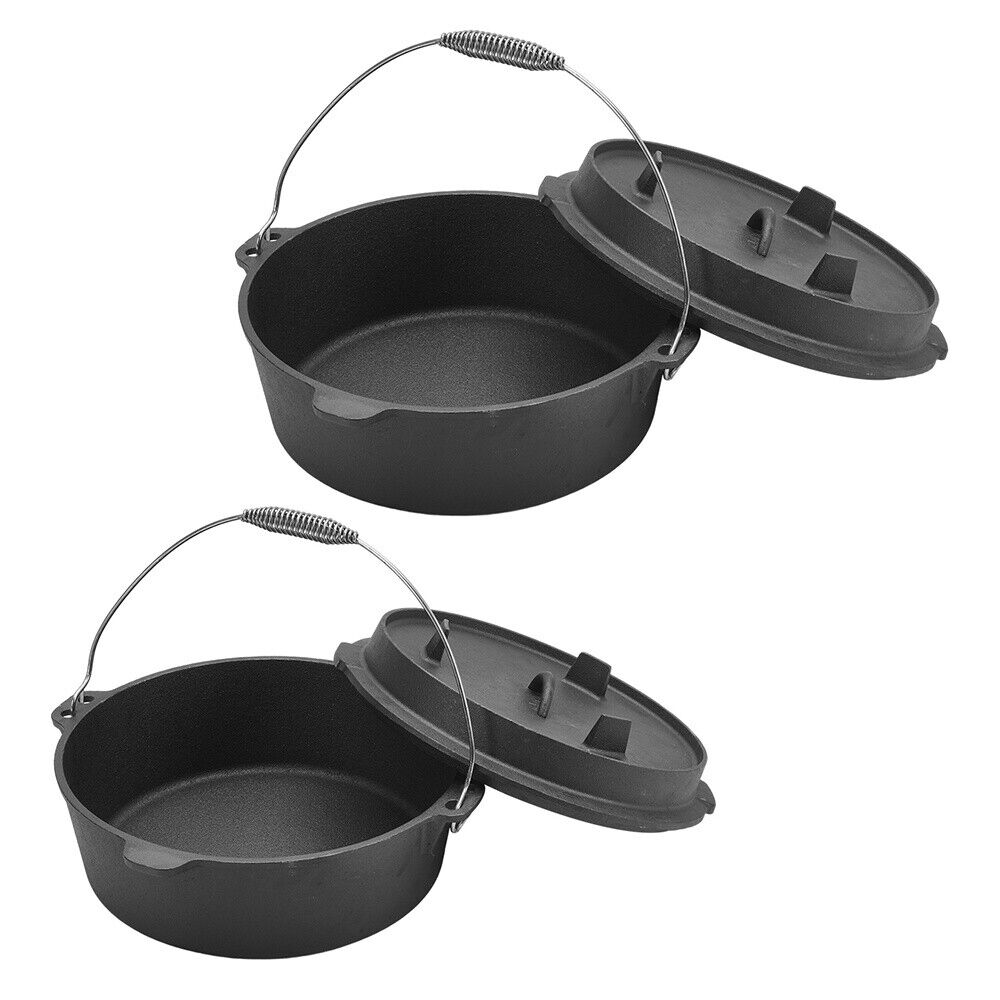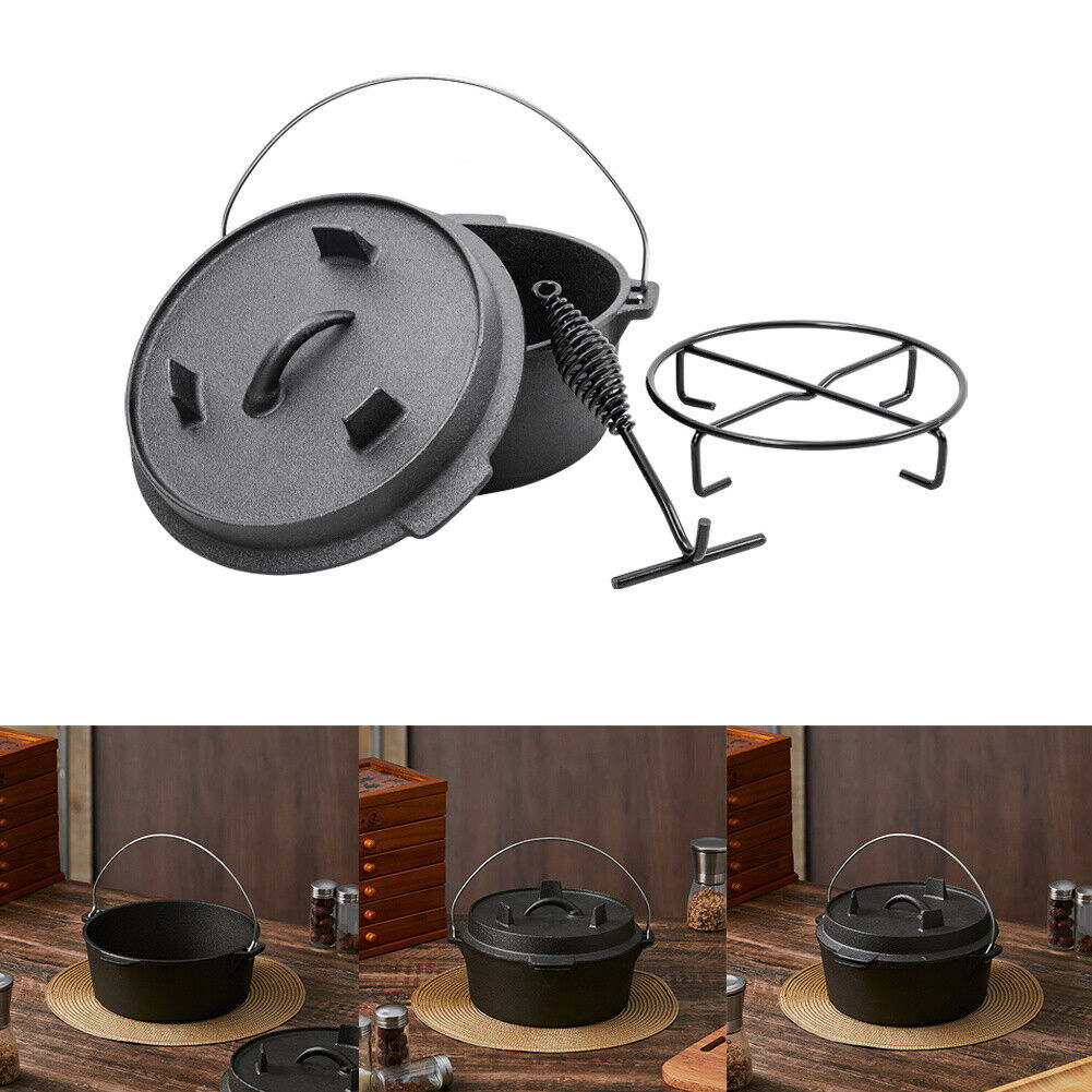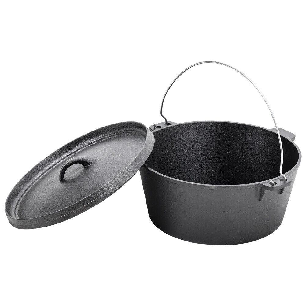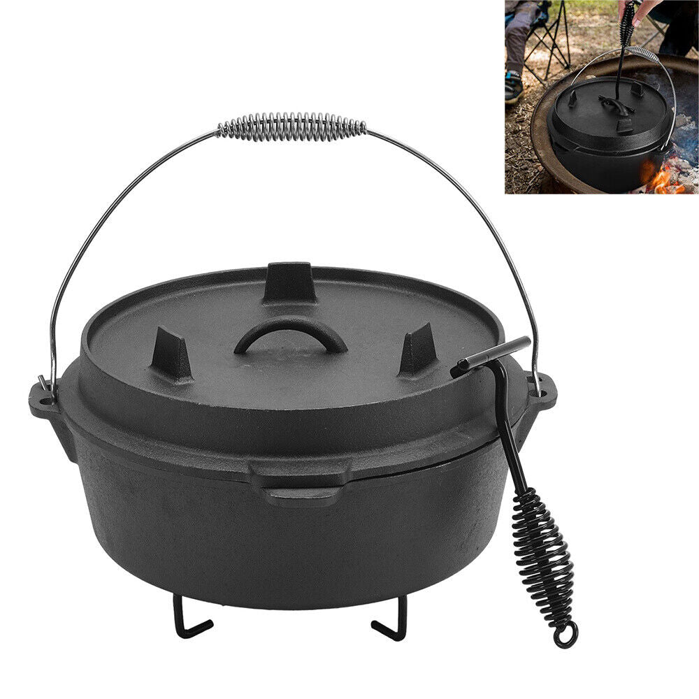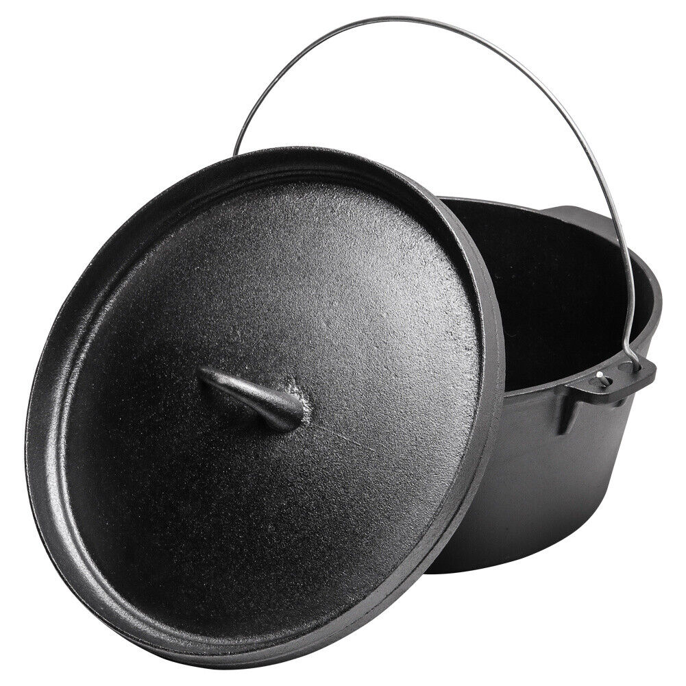 Large Camping Stew Dutch Oven Stockpot Campfire Seasoned Pot with Lid Handle NEW