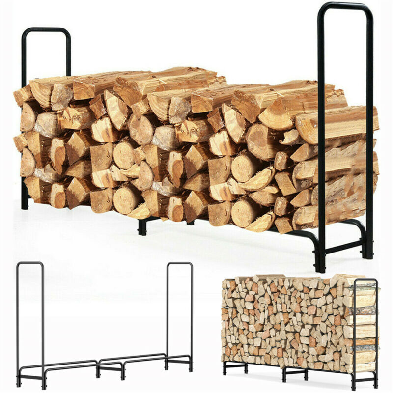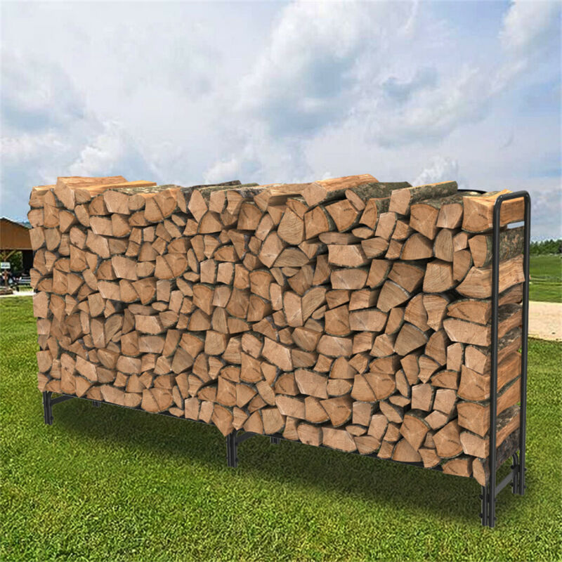 Large Capacity 8ft Firewood Rack Outdoor Patio Fireplace Log Storage Rack Holder