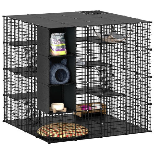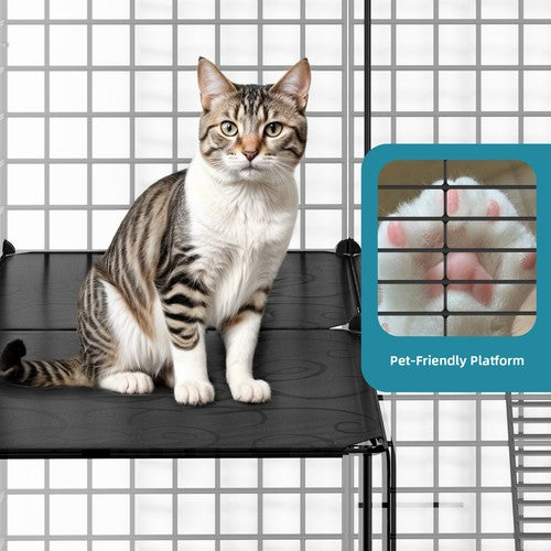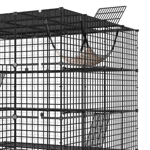 Large Cat Cage Indoor Catio Cat Enclosures 4 Tier Kennel Metal Playpen w/Hammock