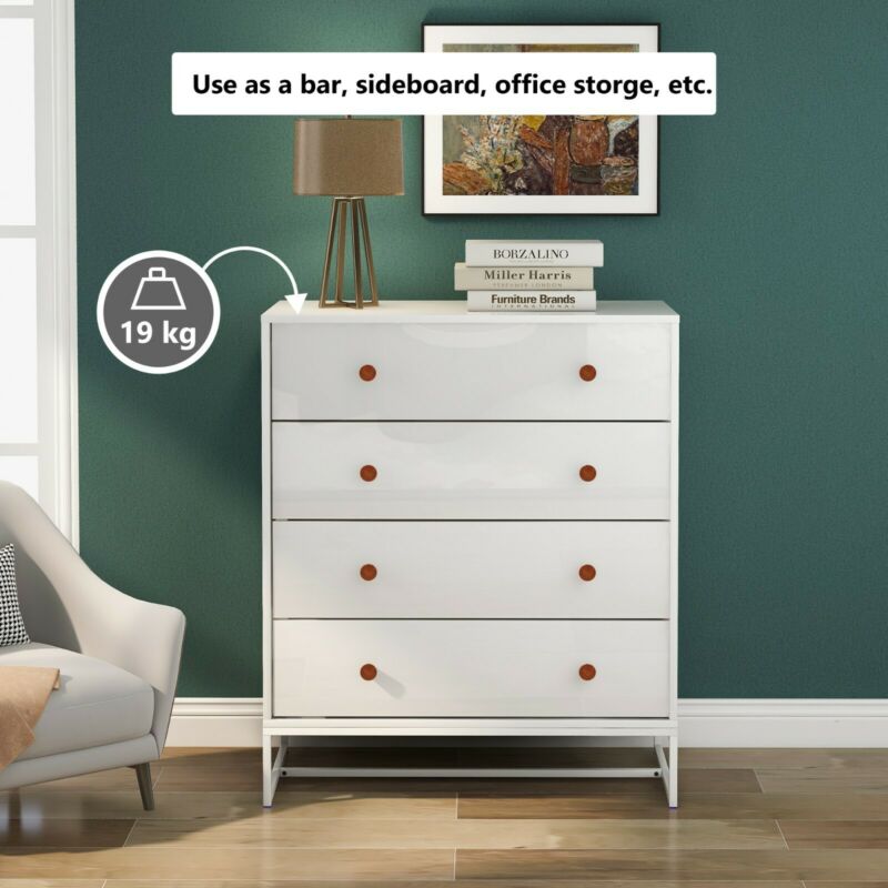 Large Chest of Drawers White 4 Drawers Bedroom Hallway with Wide Storage Space