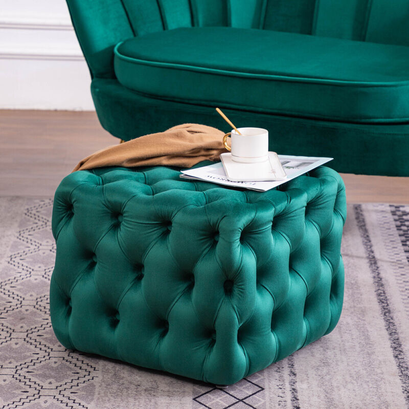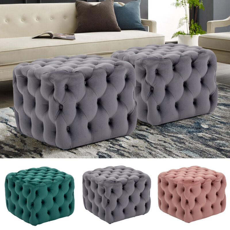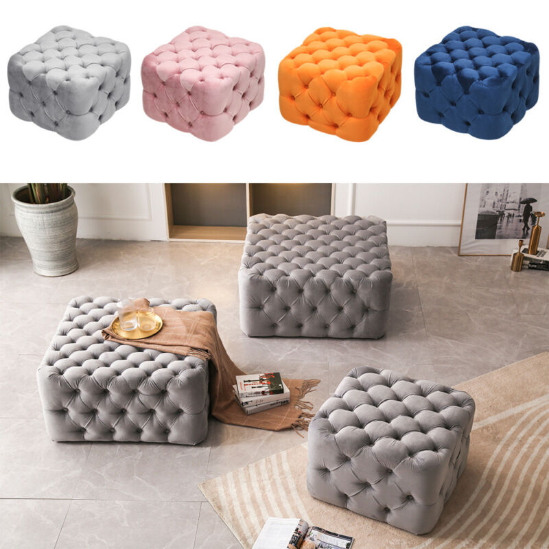 Large Chesterfield Deep Button Velvet Footstool Coffee Table Display Pouffe Seat