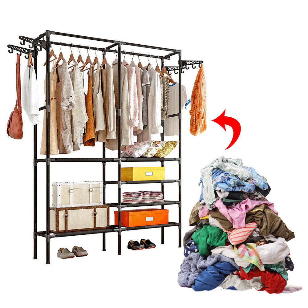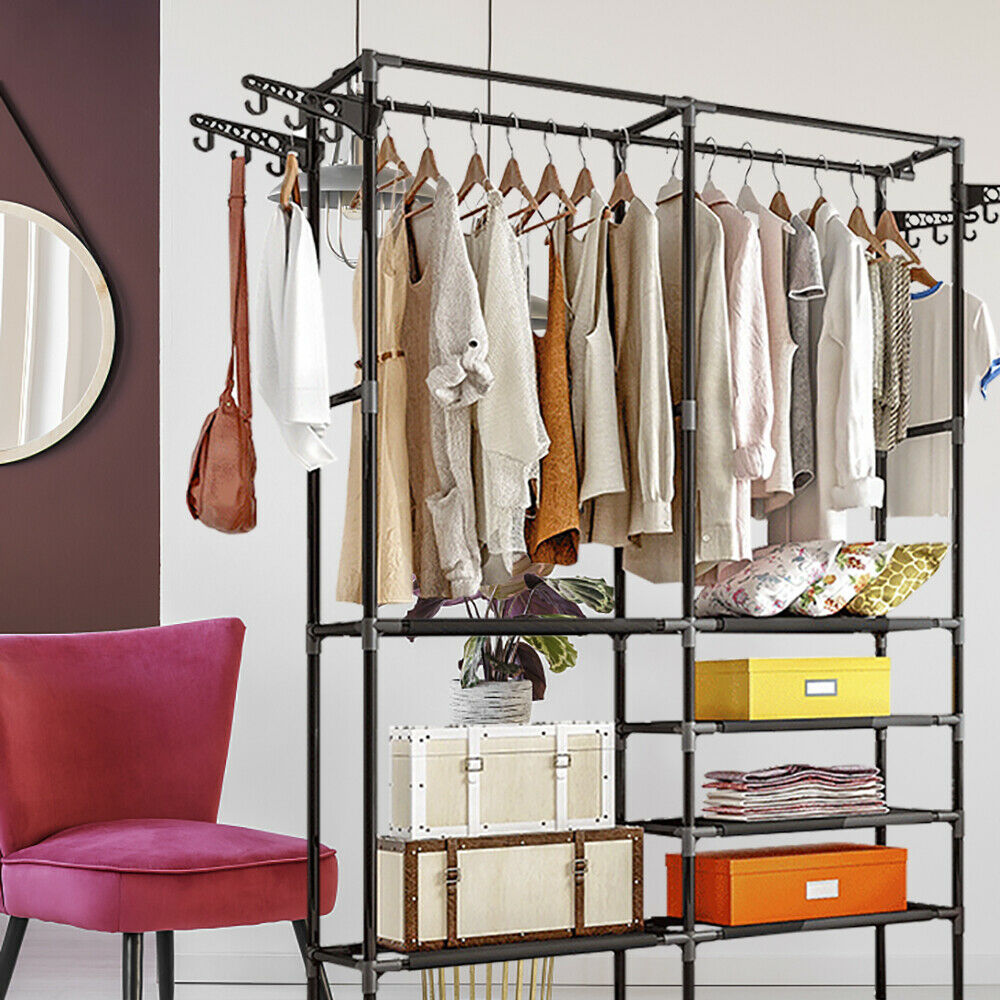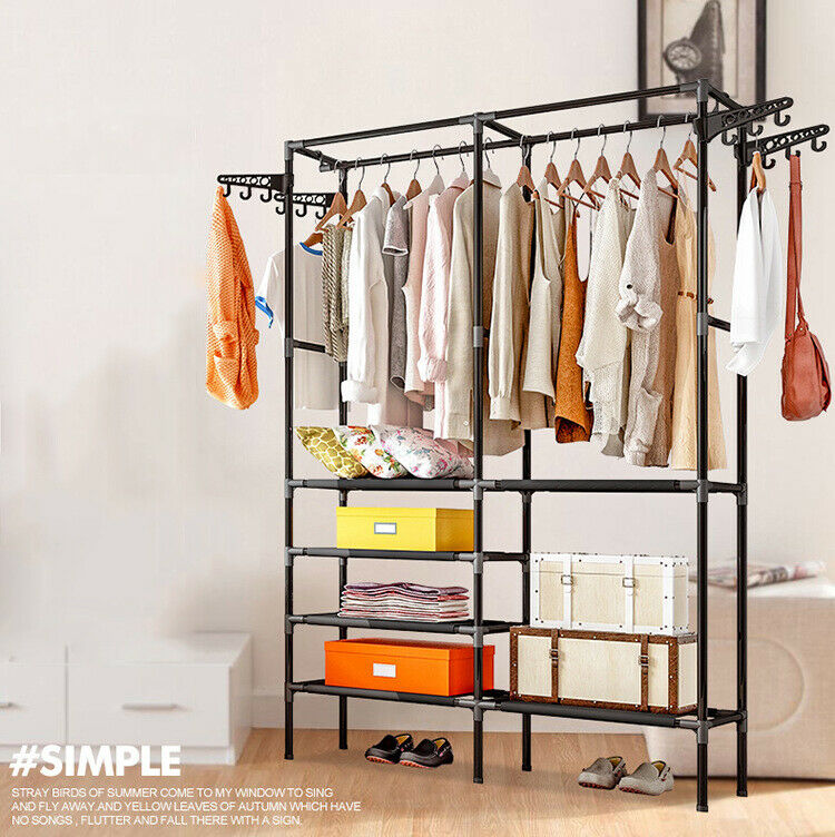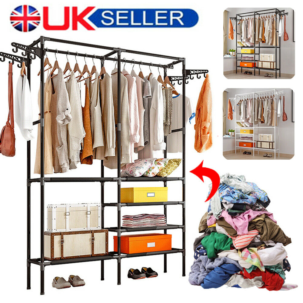 Large Clothes Rail Hanging Coat Stand Shoe Rack Shelf Storage Wardrobe Organizer