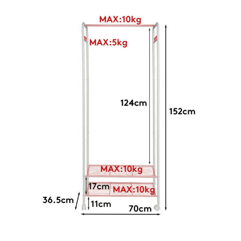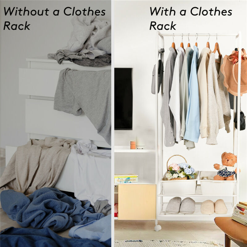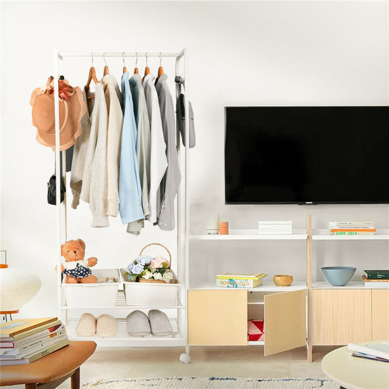 Large Clothes Rail Rack Rolling Garment Rack Shelves 8 Side Hooks Hanging Closet