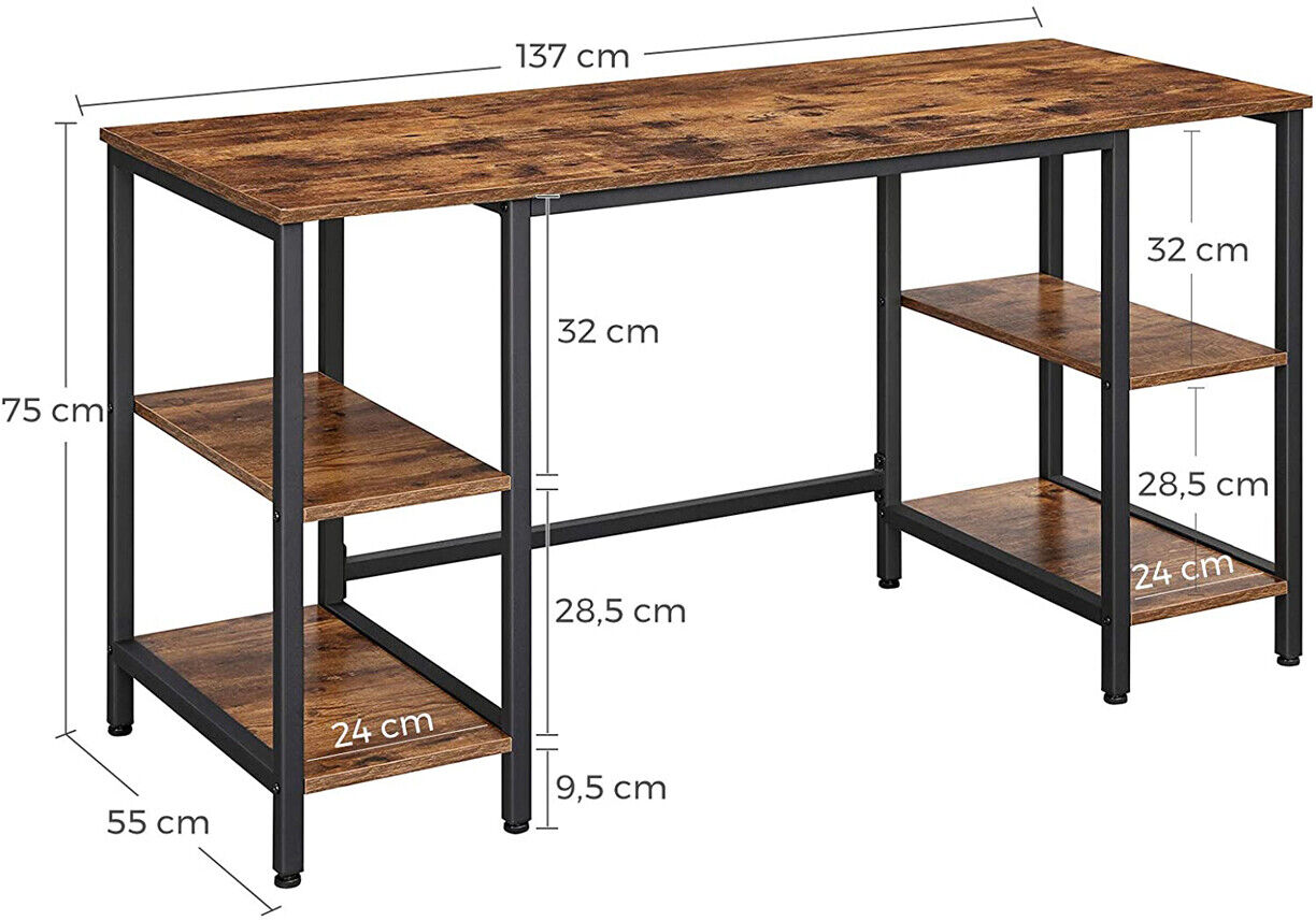 Large Computer Desk Laptop Pc Writing Study Office Industrial Table 4 Shelves