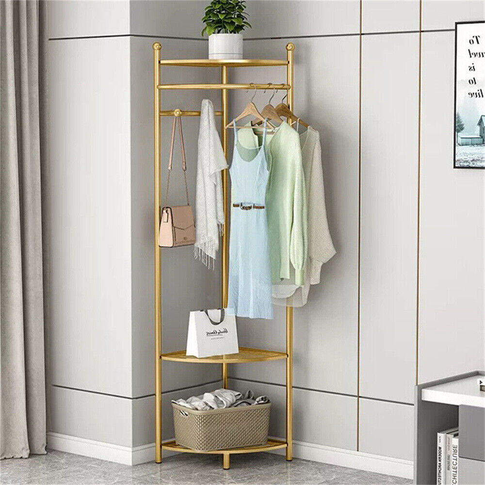 Large Corner Coat Rack Stand Clothes Hat Scarf Hanger Shoe Rack Triple Gold Legs