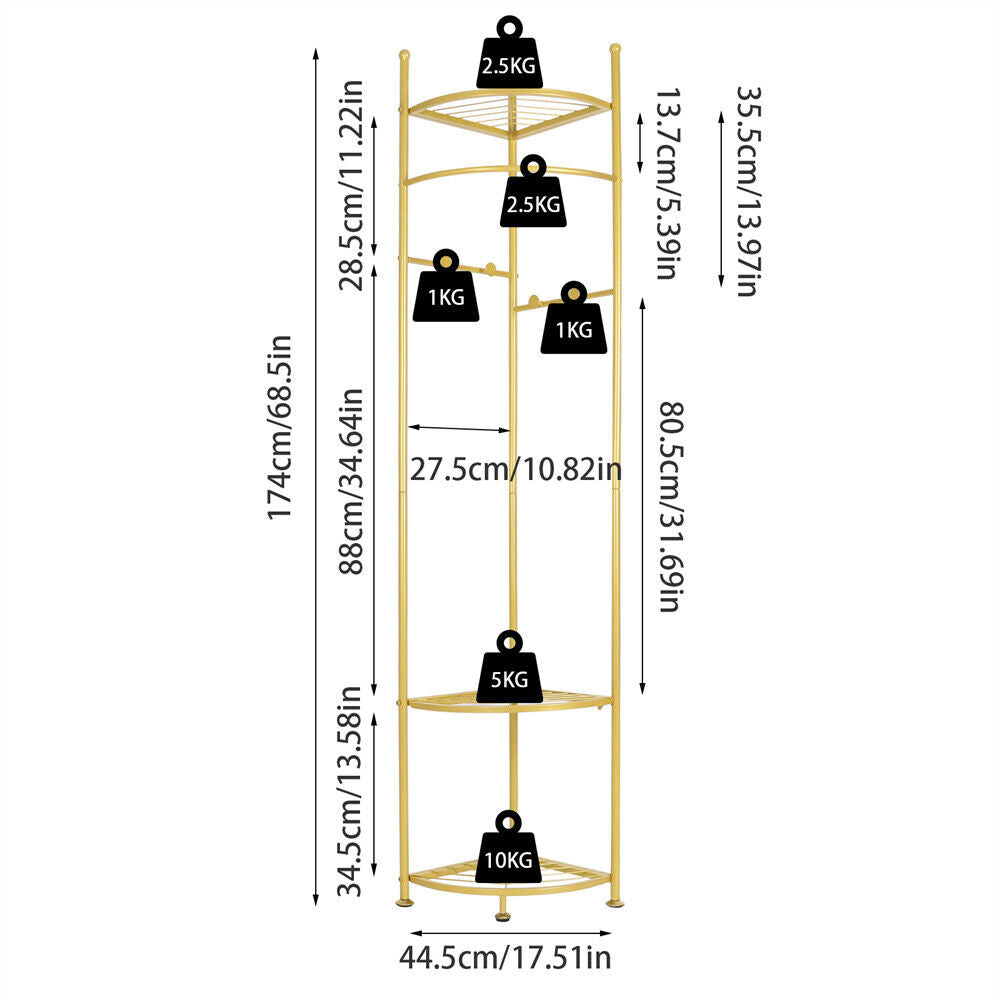 Large Corner Coat Rack Stand Clothes Hat Scarf Hanger Shoe Rack Triple Gold Legs