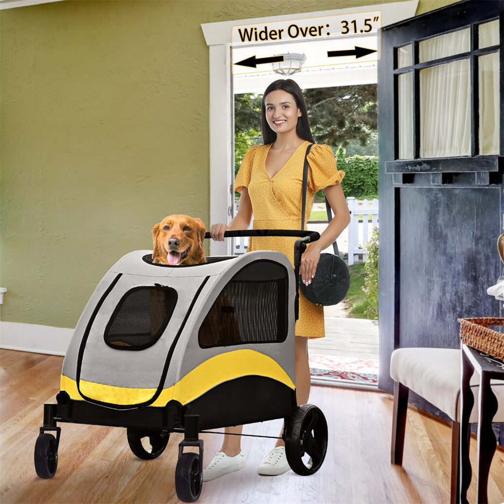 Large Dogs Stroller Foldable Pet Travel Carriage Breathable &Portable 45.5” Tall