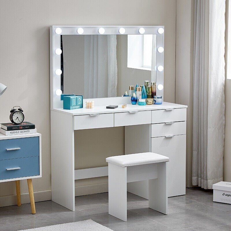 Large Dressing Table Stool Set with LED Light Mirror Vanity Make up Desk NEW