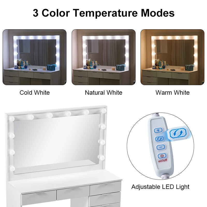 Large Dressing Table Stool Set with LED Light Mirror Vanity Make up Desk UK