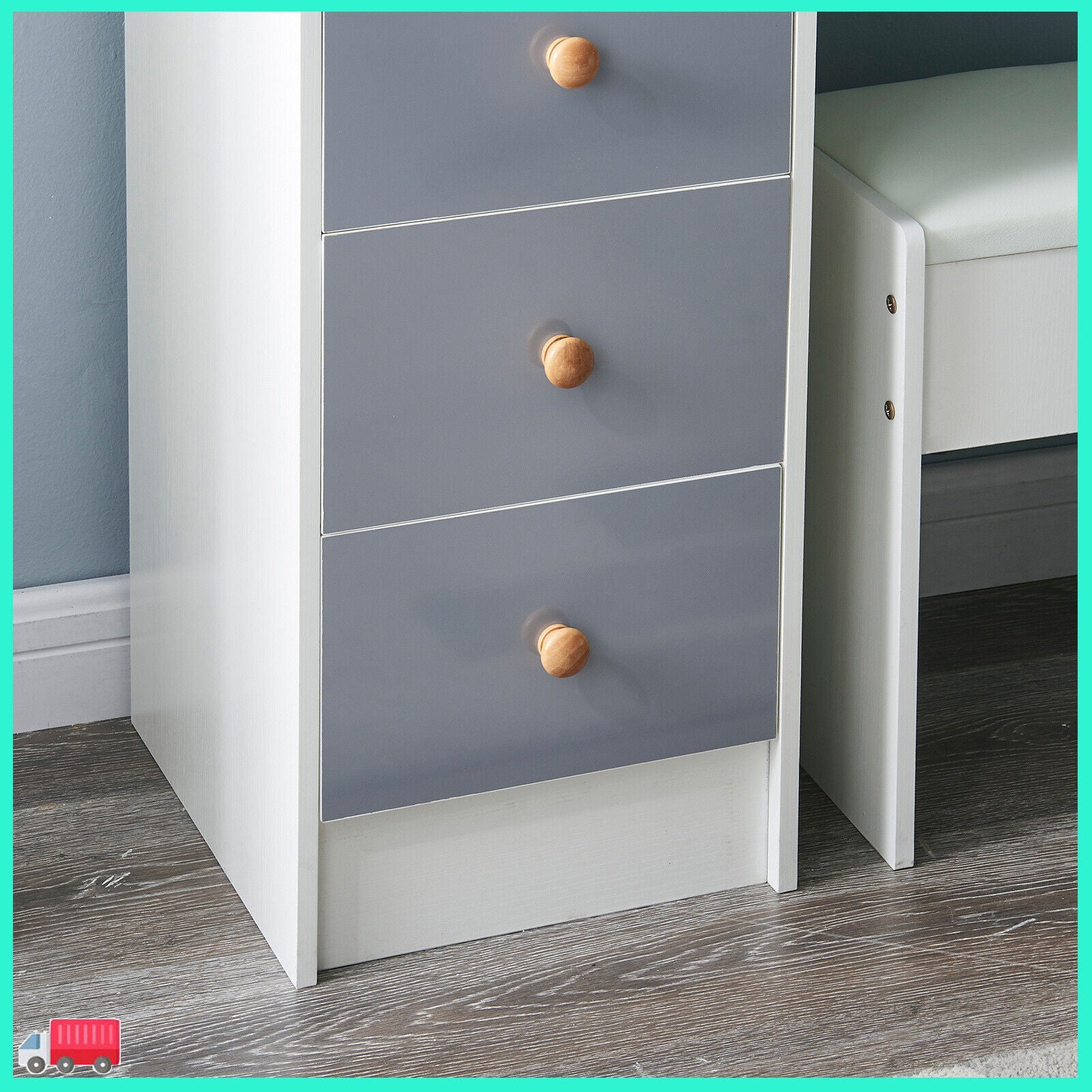 Features With Mirror, With Stool, Flat Pack, desk Included, With 10 Led Lights