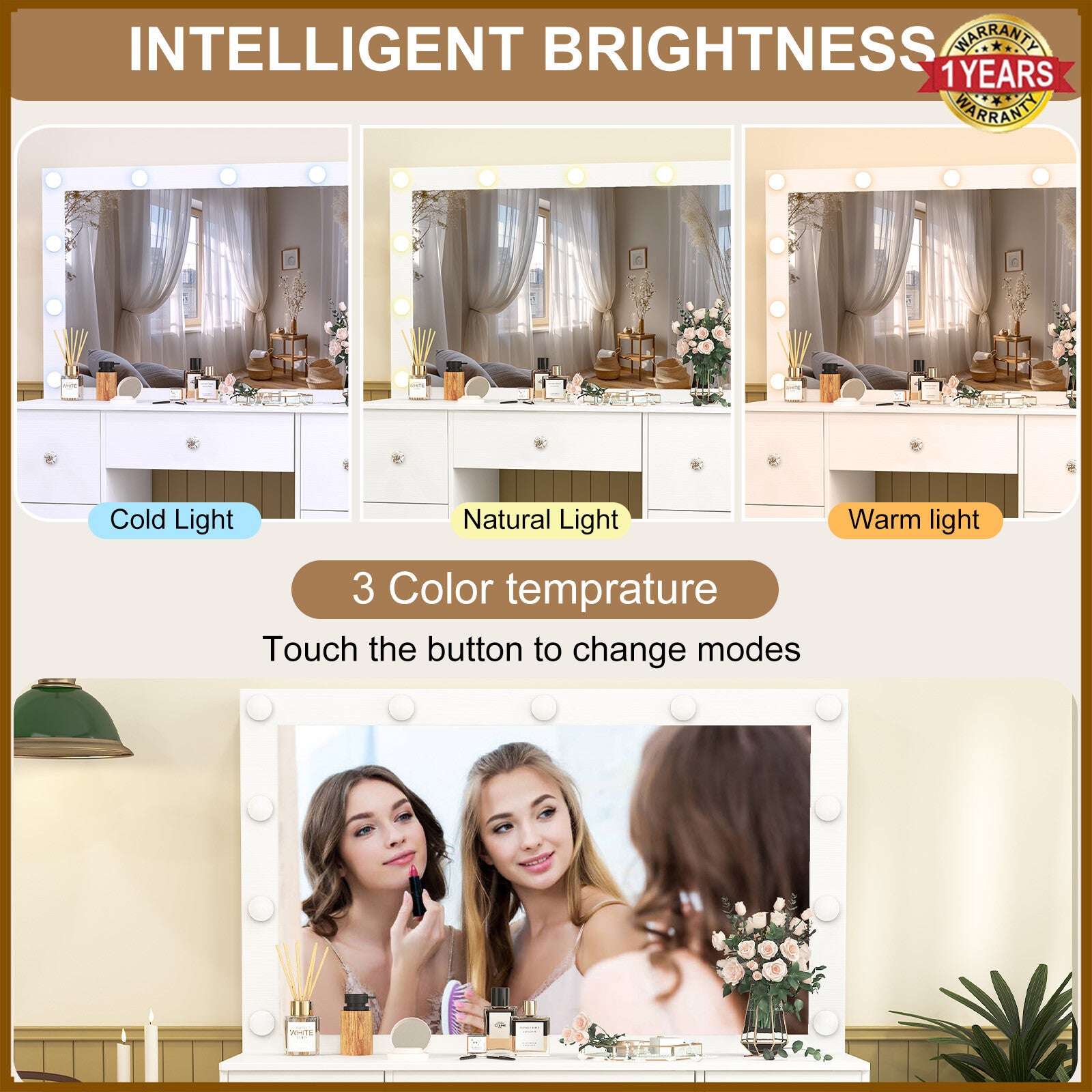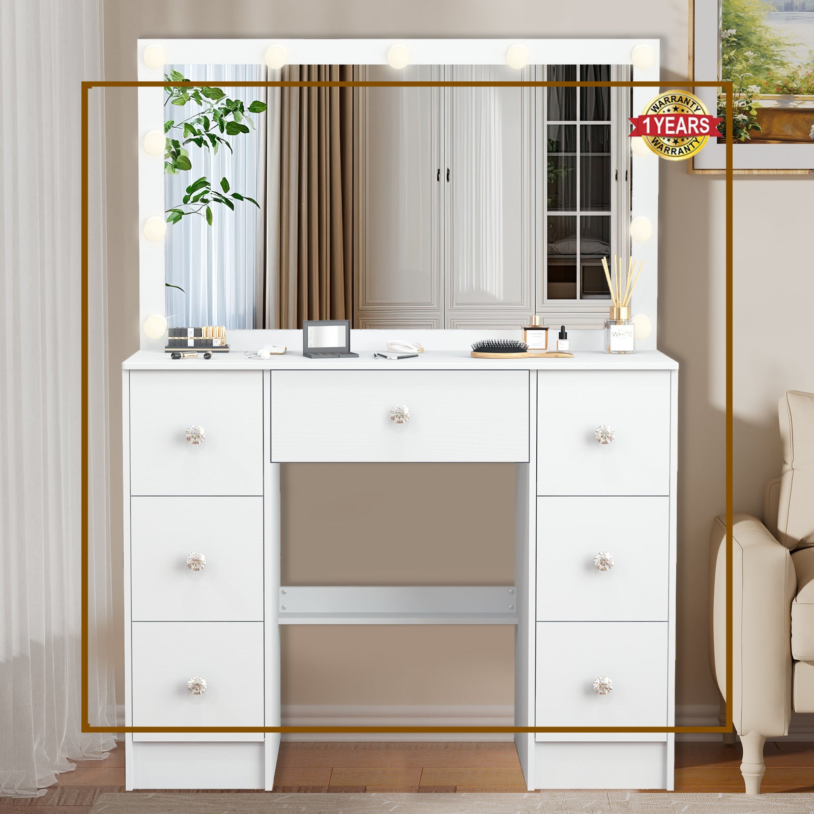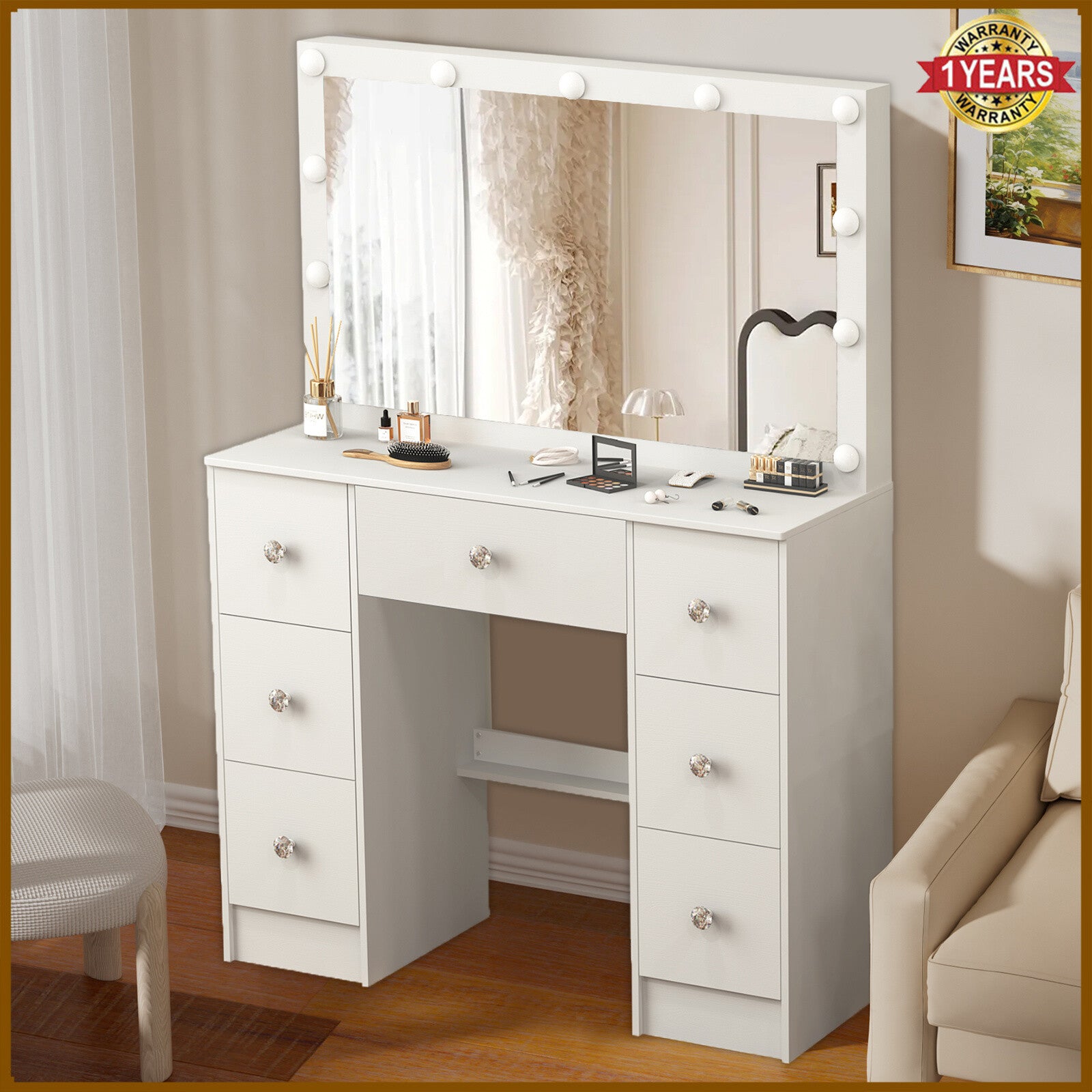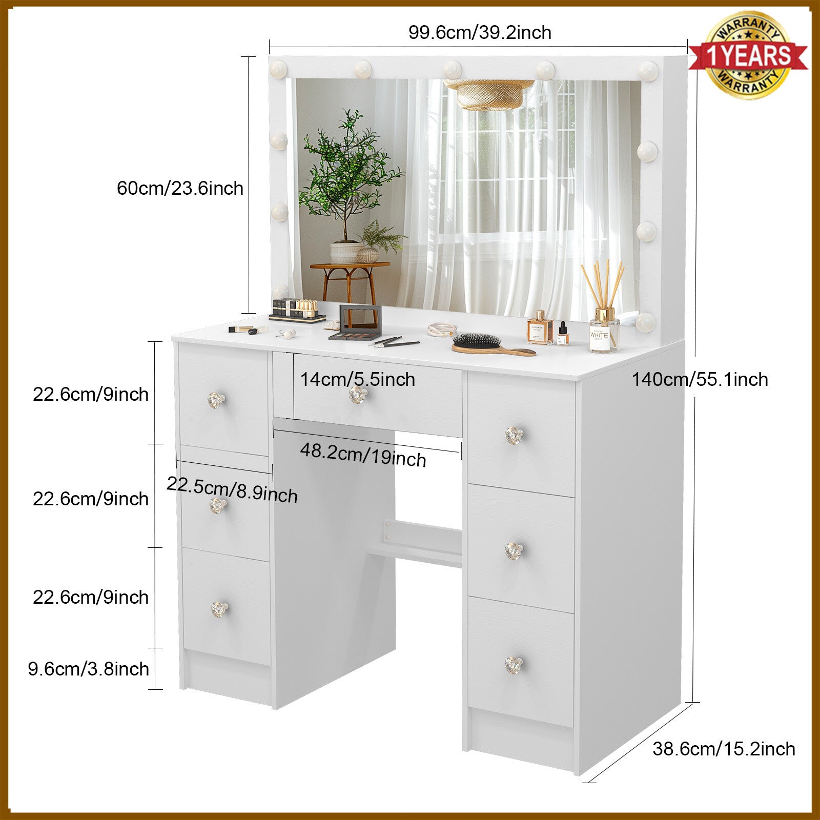 Large Dressing Table With 11 led Mirror Drawers Vanity Set Bedroom Makeup Table