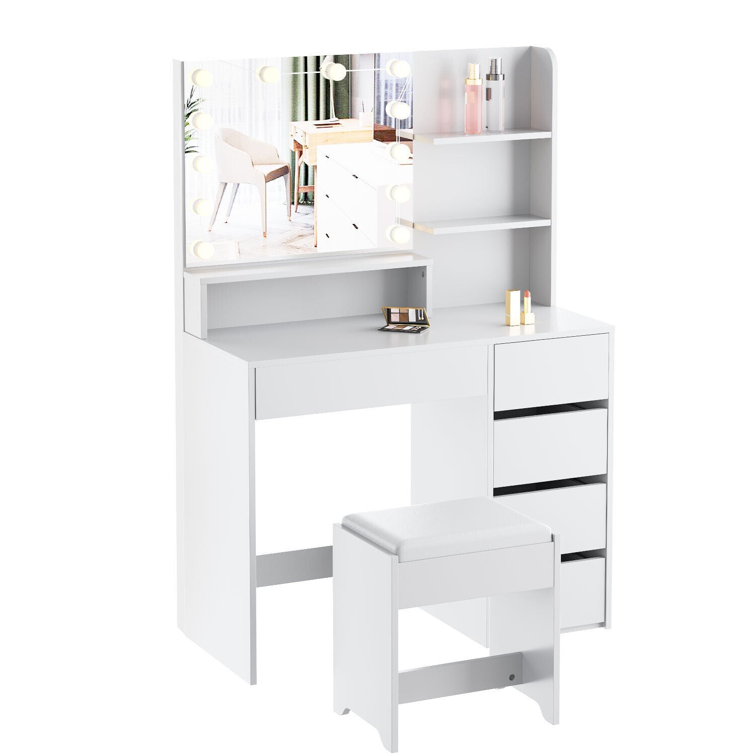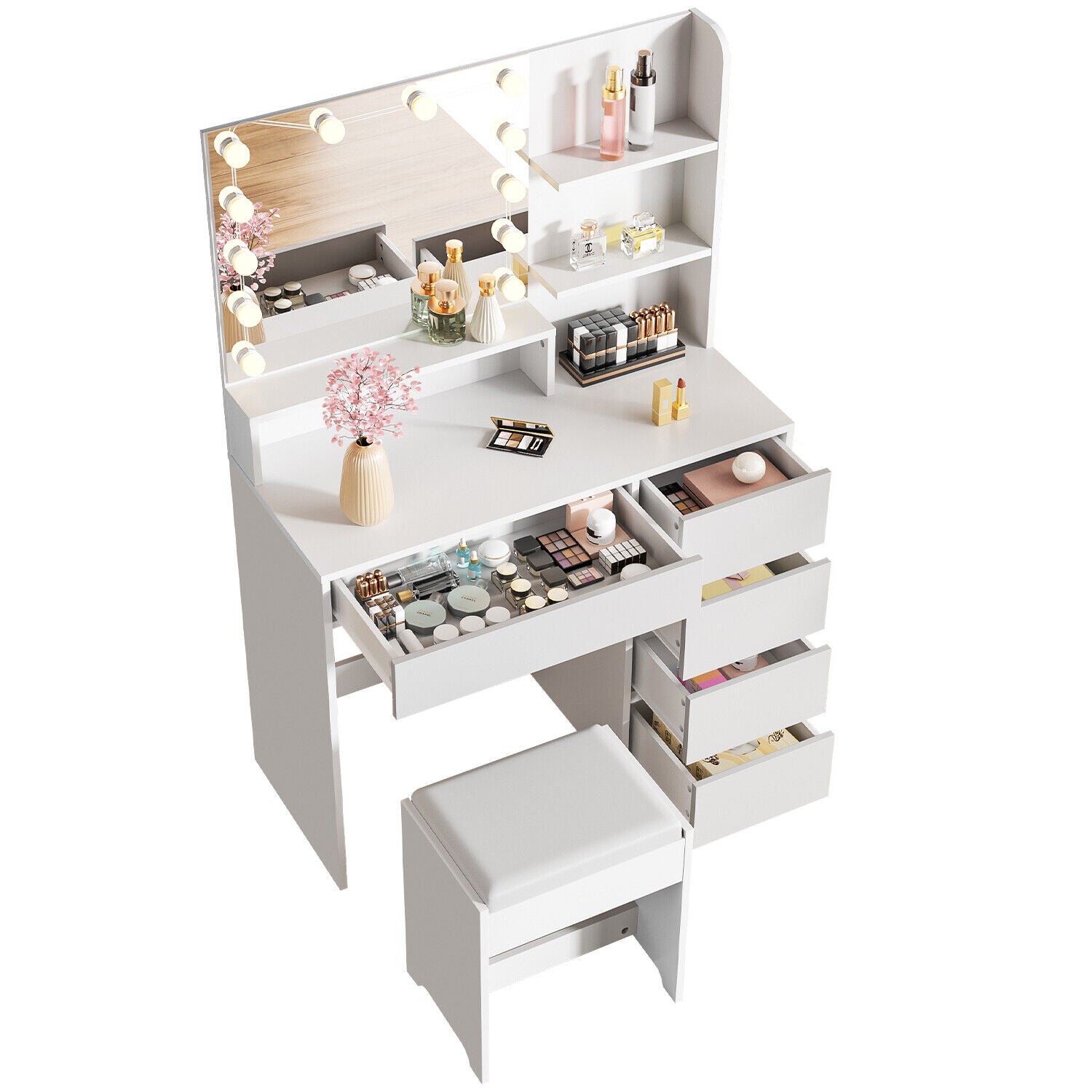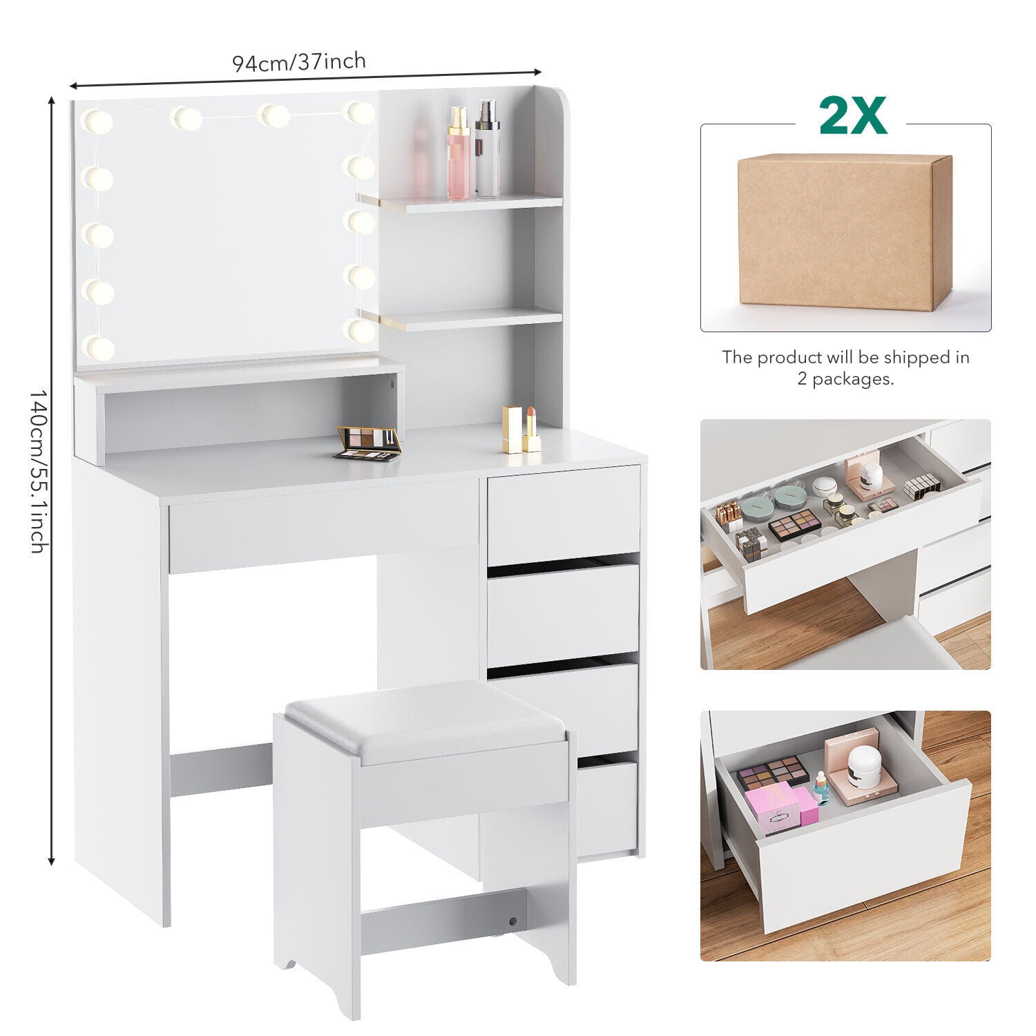 Large Dressing Table With Light Mirror Drawers Stool Vanity Set Makeup Table