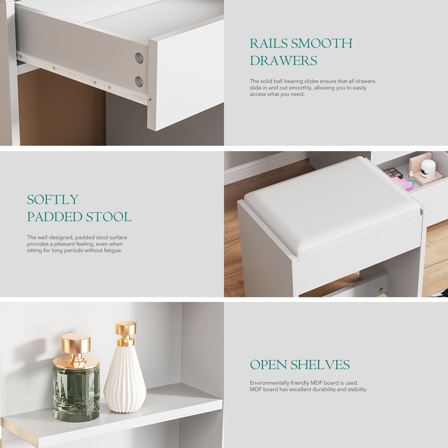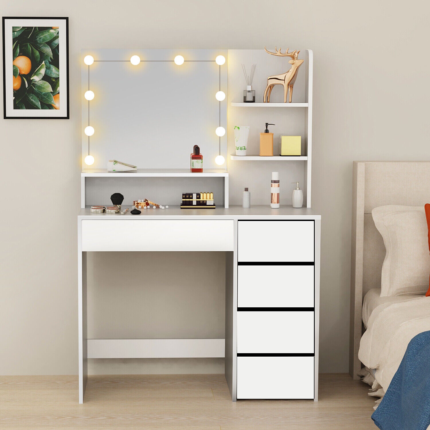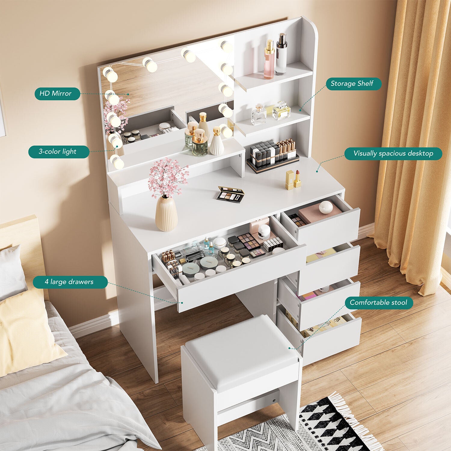 Large Dressing Table With Light Mirror Drawers Stool Vanity Set Makeup Table