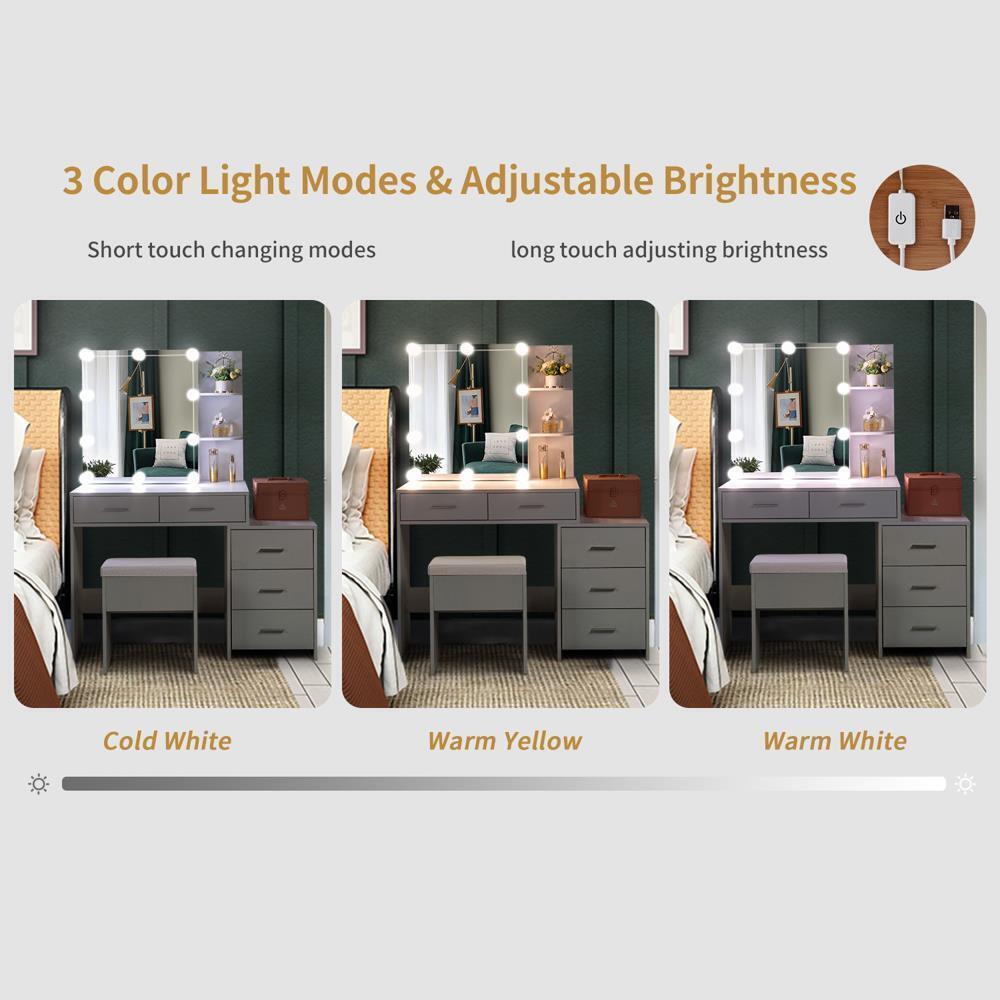 With Mirror, With Stool, Chair Included, Hidden Storage, Stool Included, With Drawers, With Shelves