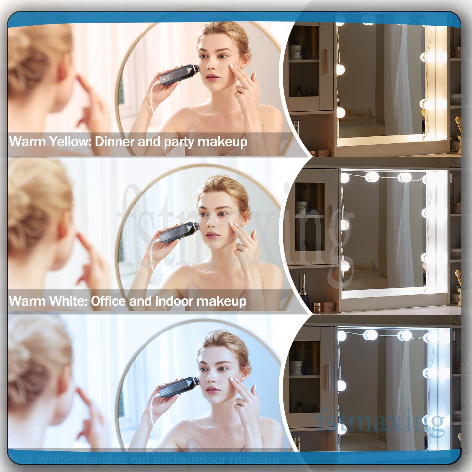 Features With Drawers, With 10 Led Bulbs, With Cupboard, With Mirror, High Gloss, With Shelves, Mirrored, With Open Shelves, With Lighted Mirror, Warm White, Flat Pack, Hidden Storage