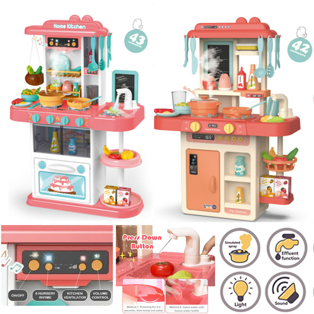 Large Electronic Kids Kitchen Pretend Play Set w/ Lights & Sounds, Spraying Mist