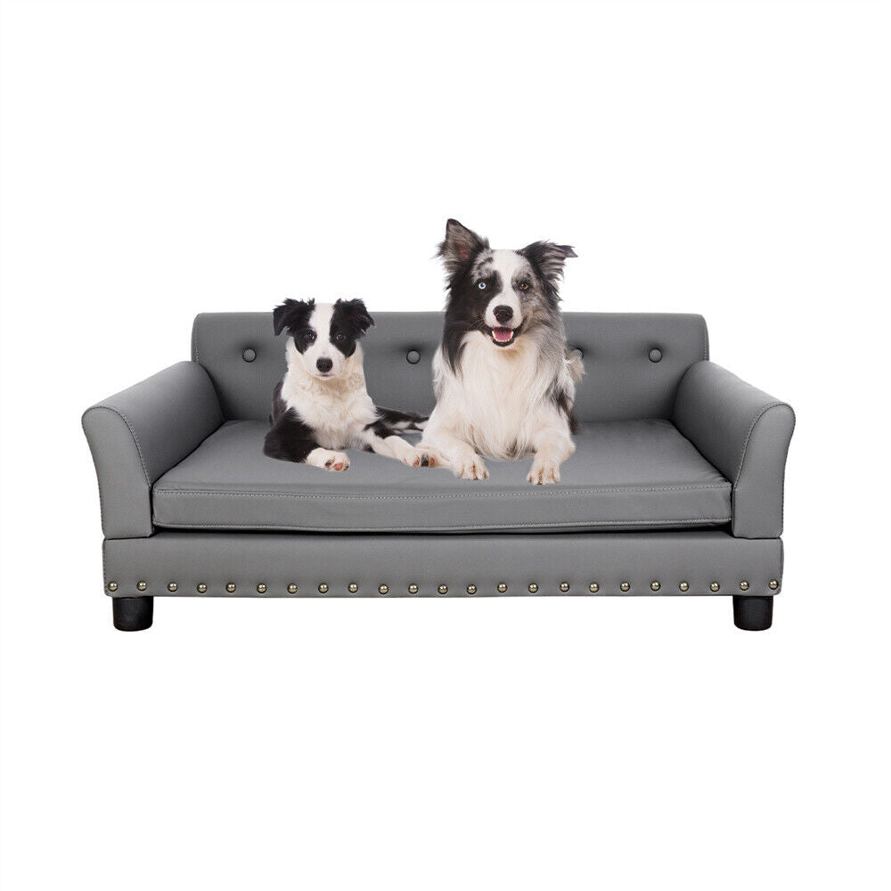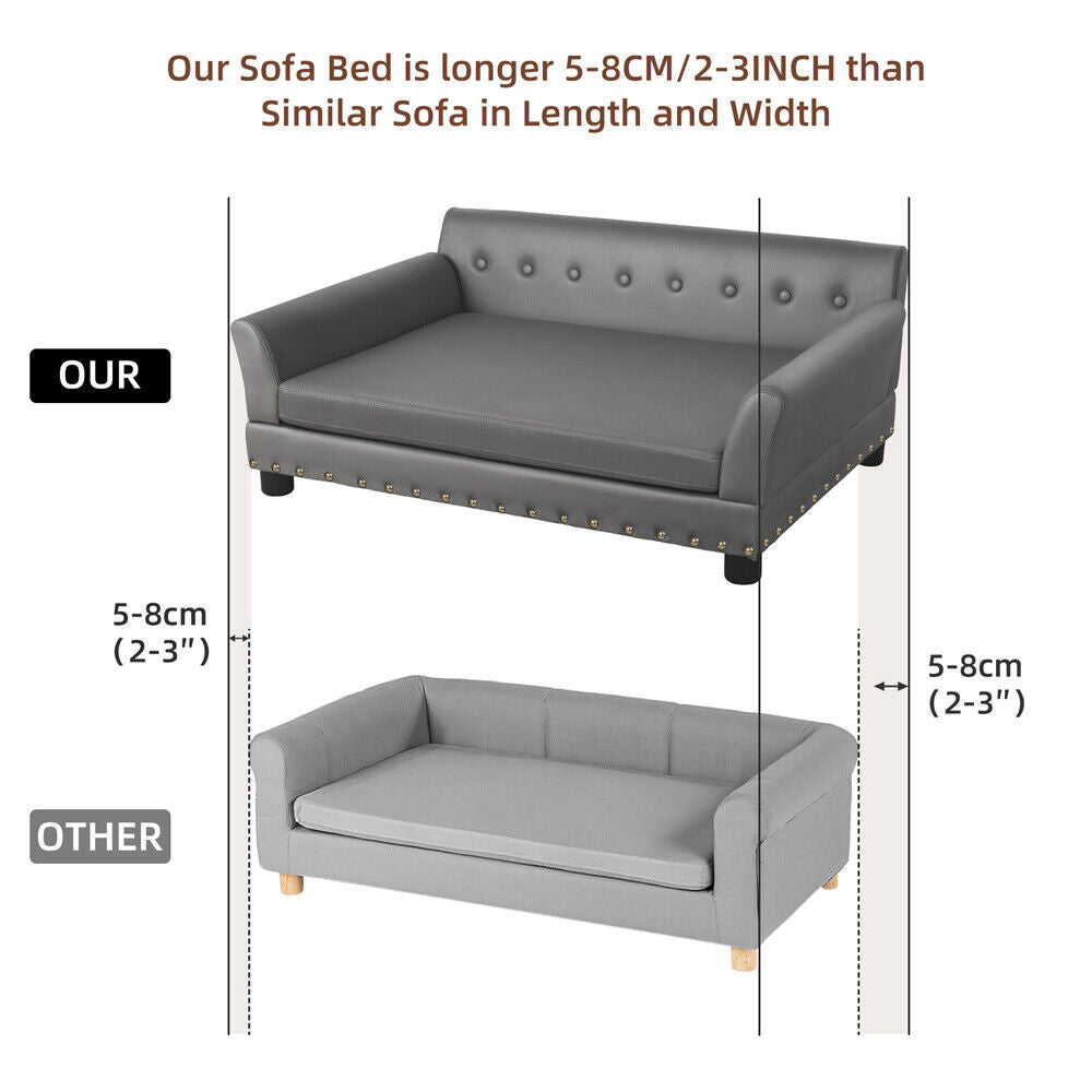 Large Elevated Dog Sofa Bed Microfiber Leather Couch Pet Sleep Joint Support Bed