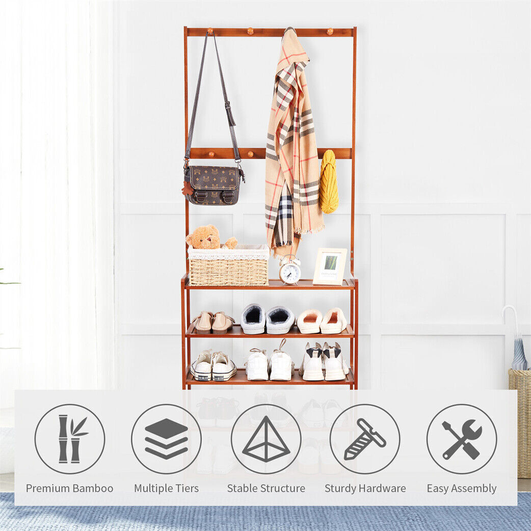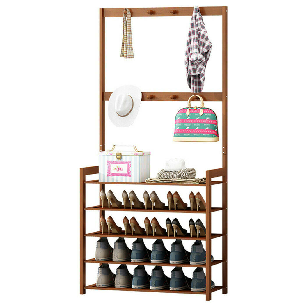 Large Elevated Wooden Hall Tree Hat Coat Stand Raised Clothes Rail Shoe Rack DIY