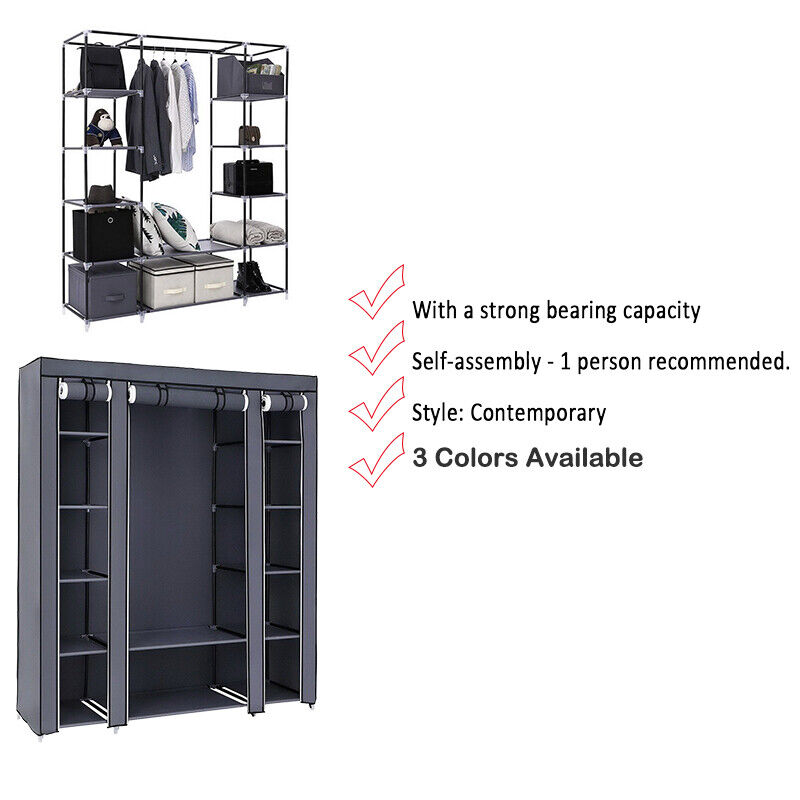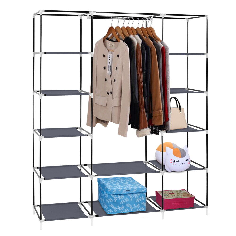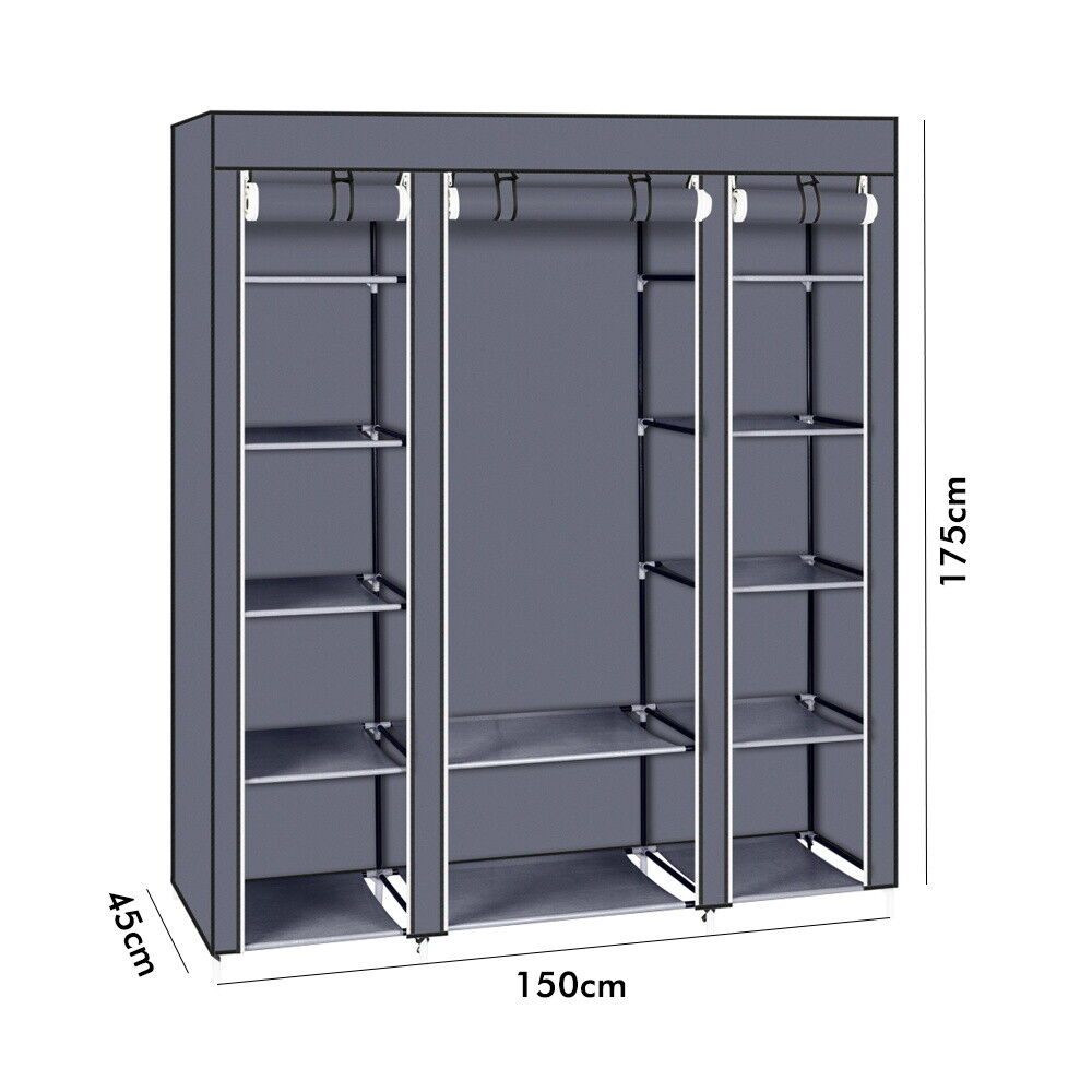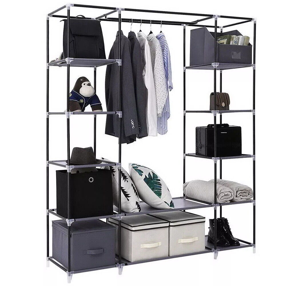 Large Fabric Canvas Wardrobe With Clothes Hanging Rail Shelves Storage Cupboard