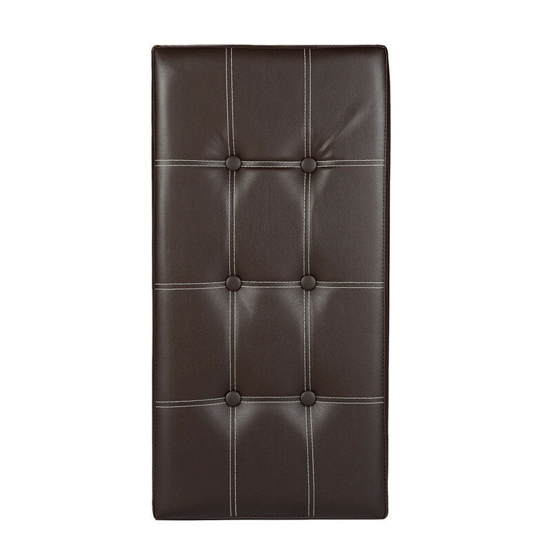 LARGE FAUX LEATHER FOLDING OTTOMAN POUFFE FOOT STOOL STORAGE BOX BROWN DOUBLE