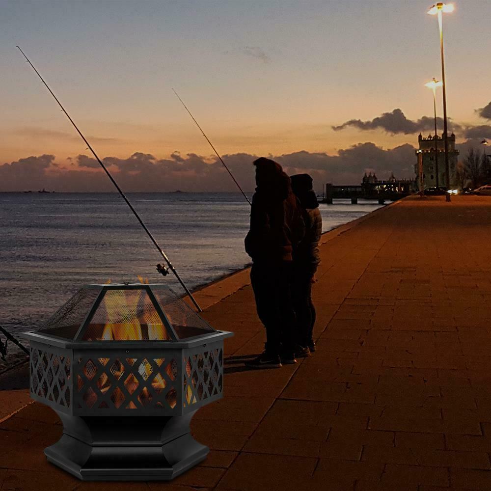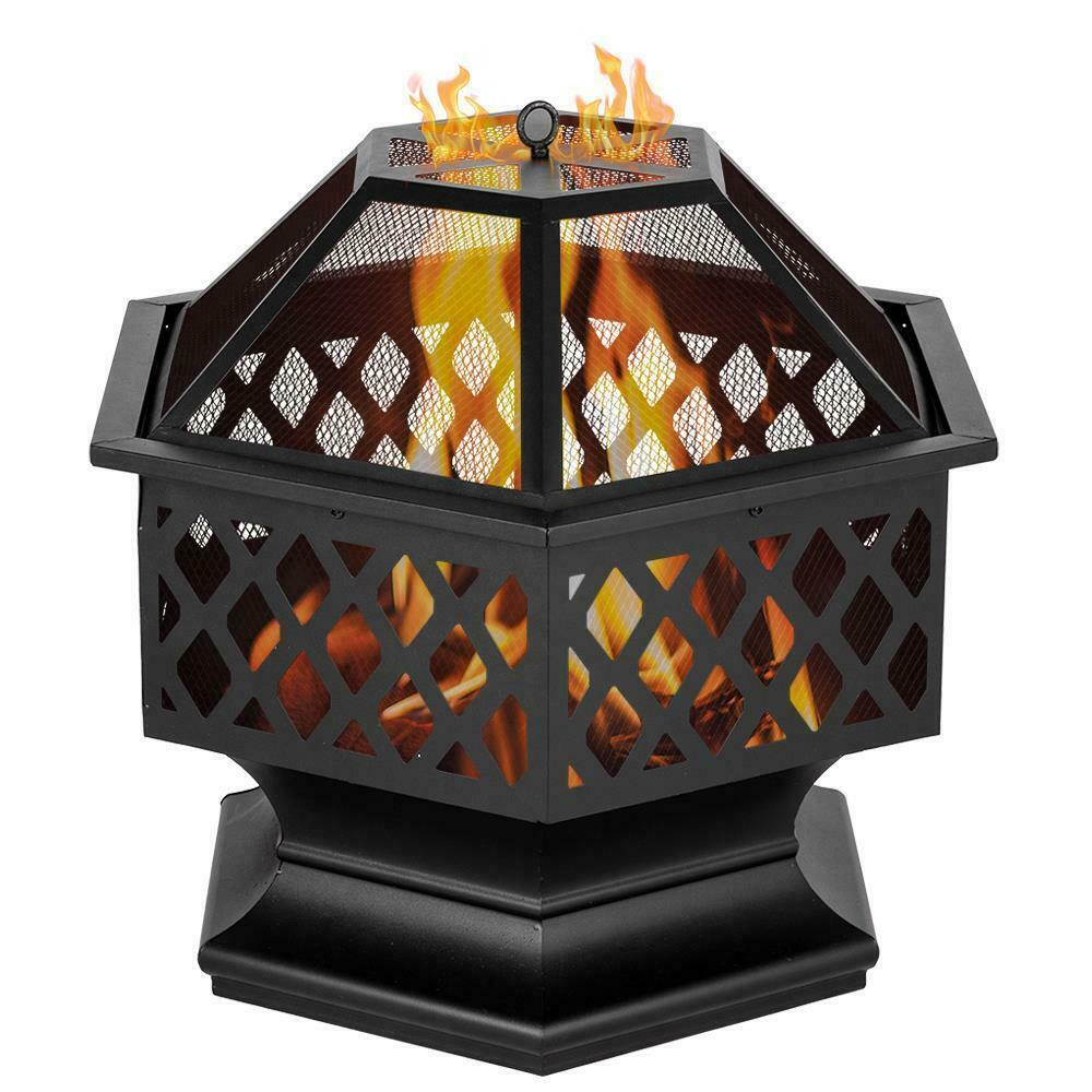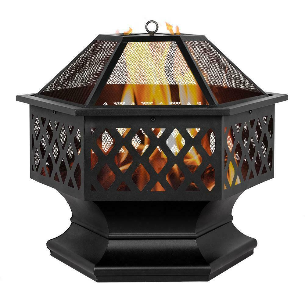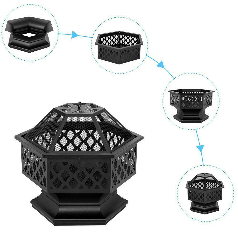 Large Fire Pit Firepit Brazier Bowl Garden Hexagonal Log Burner Heater Camping