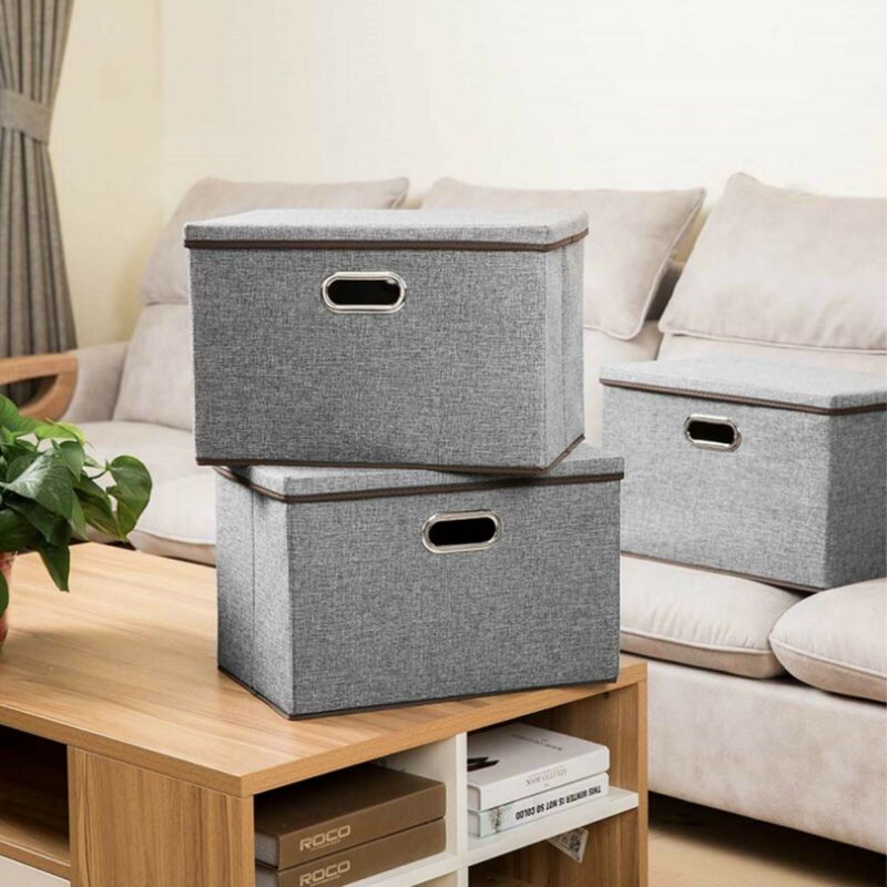 Large Foldable Storage Boxes with Lid Collapsible Home Clothes Organizer Fabric