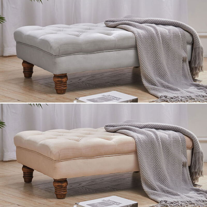Large Footstool Velvet Chesterfield Pouffe Foot Stool Ottoman Bench Coffee Table
