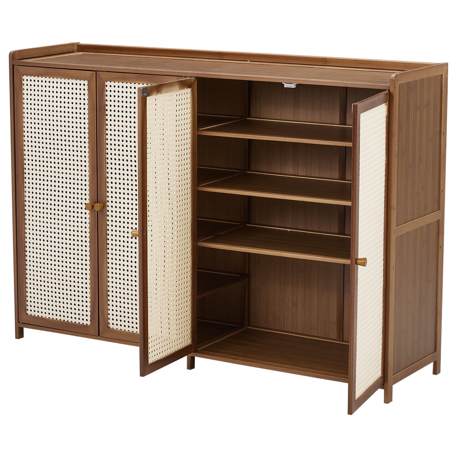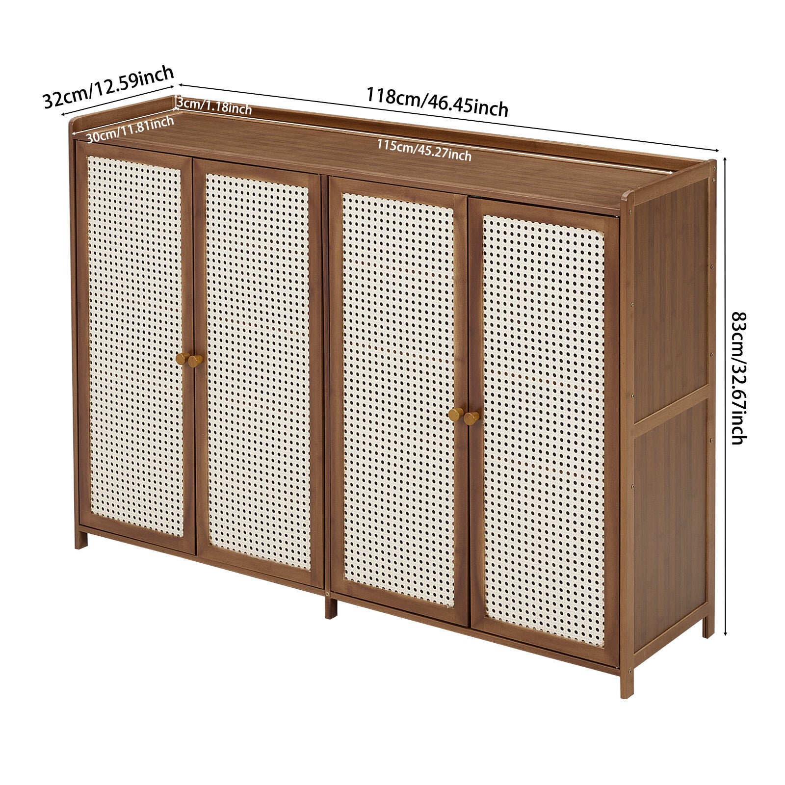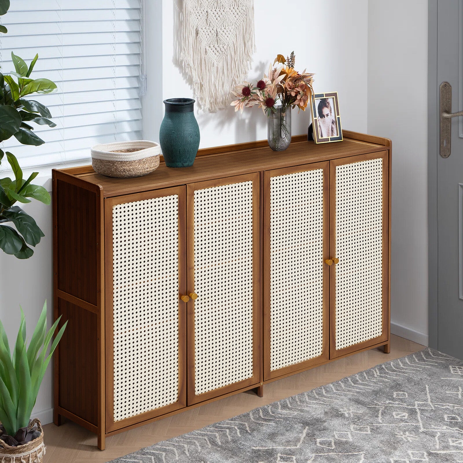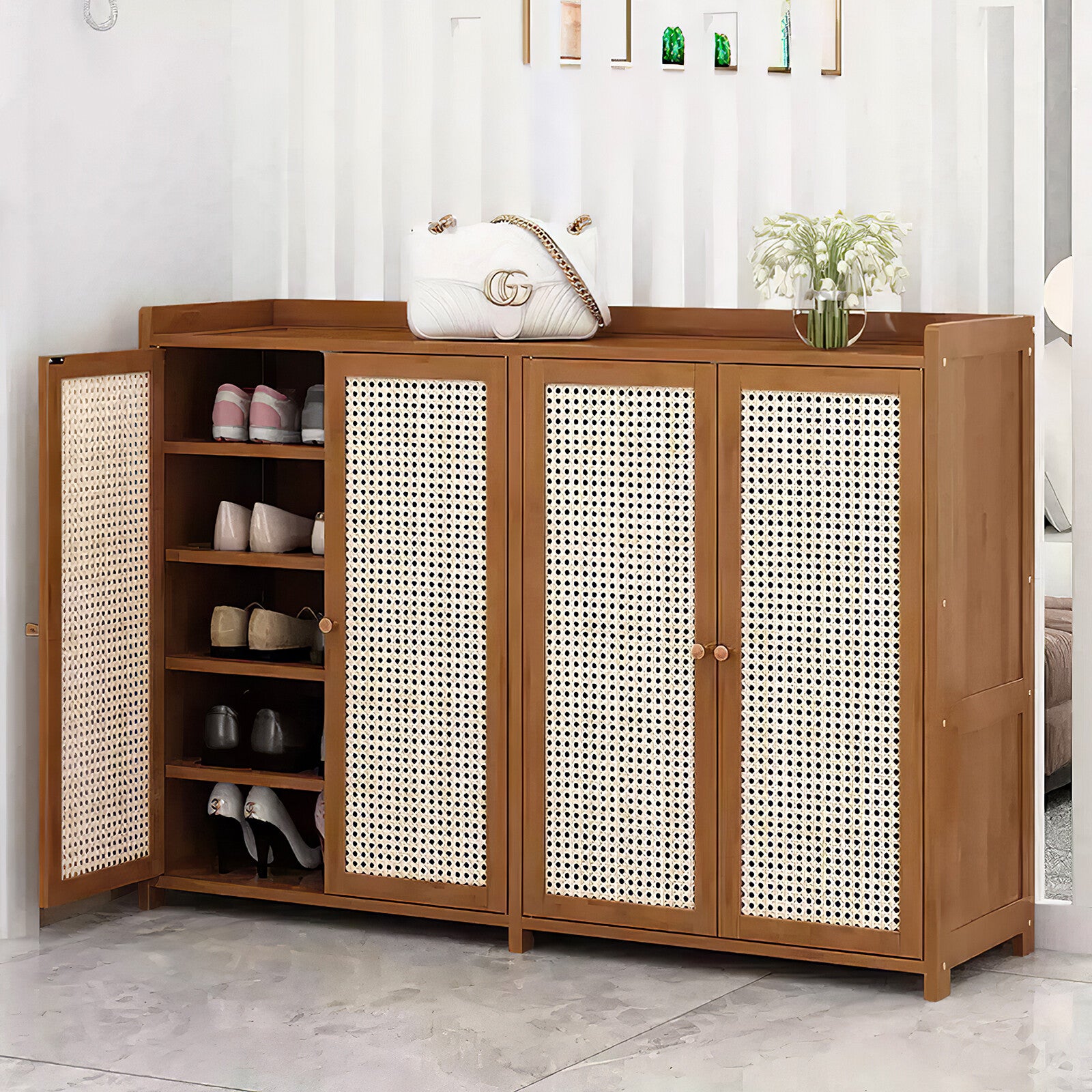 Large Free Stand 4 Door Shoe Cabinet Storage Cupboard Footwear Stand Rack Rattan
