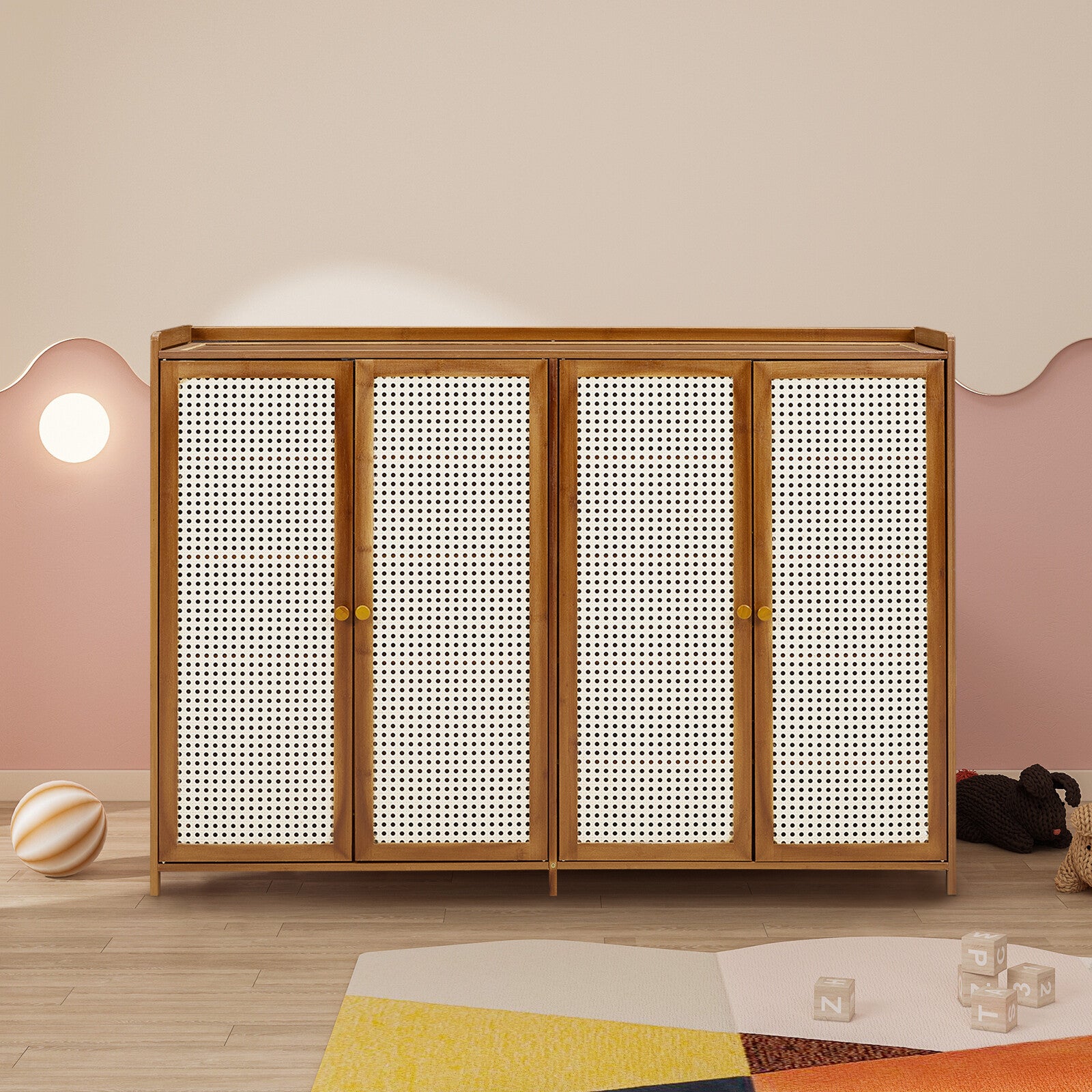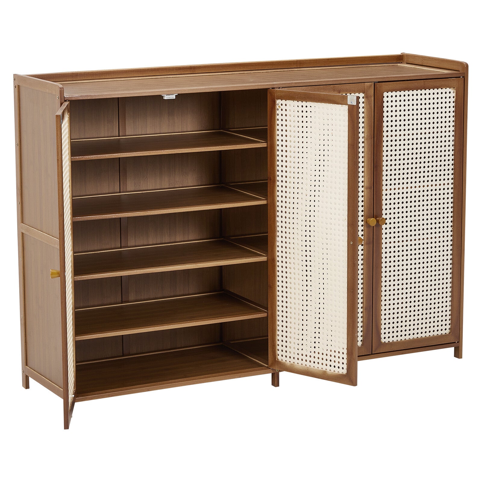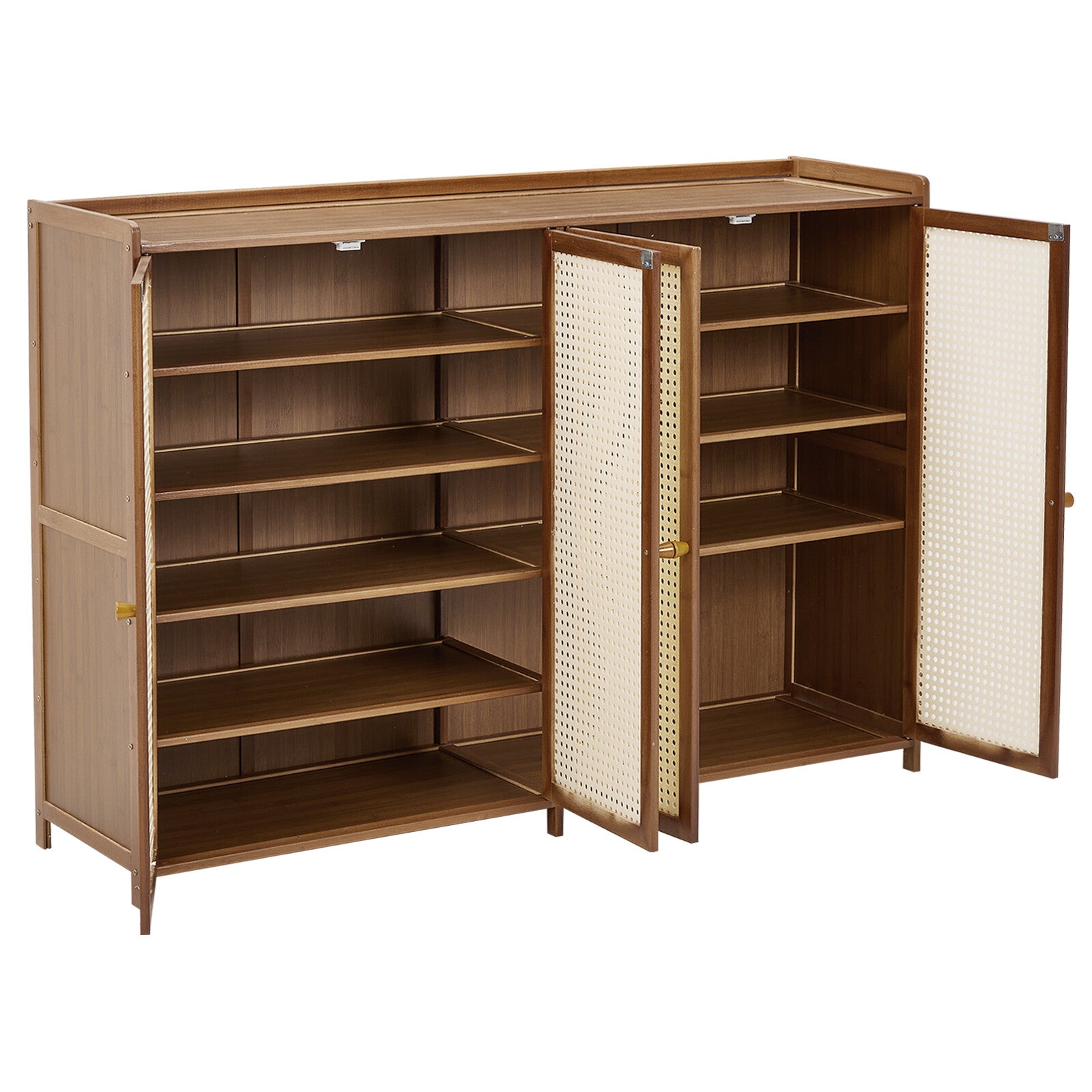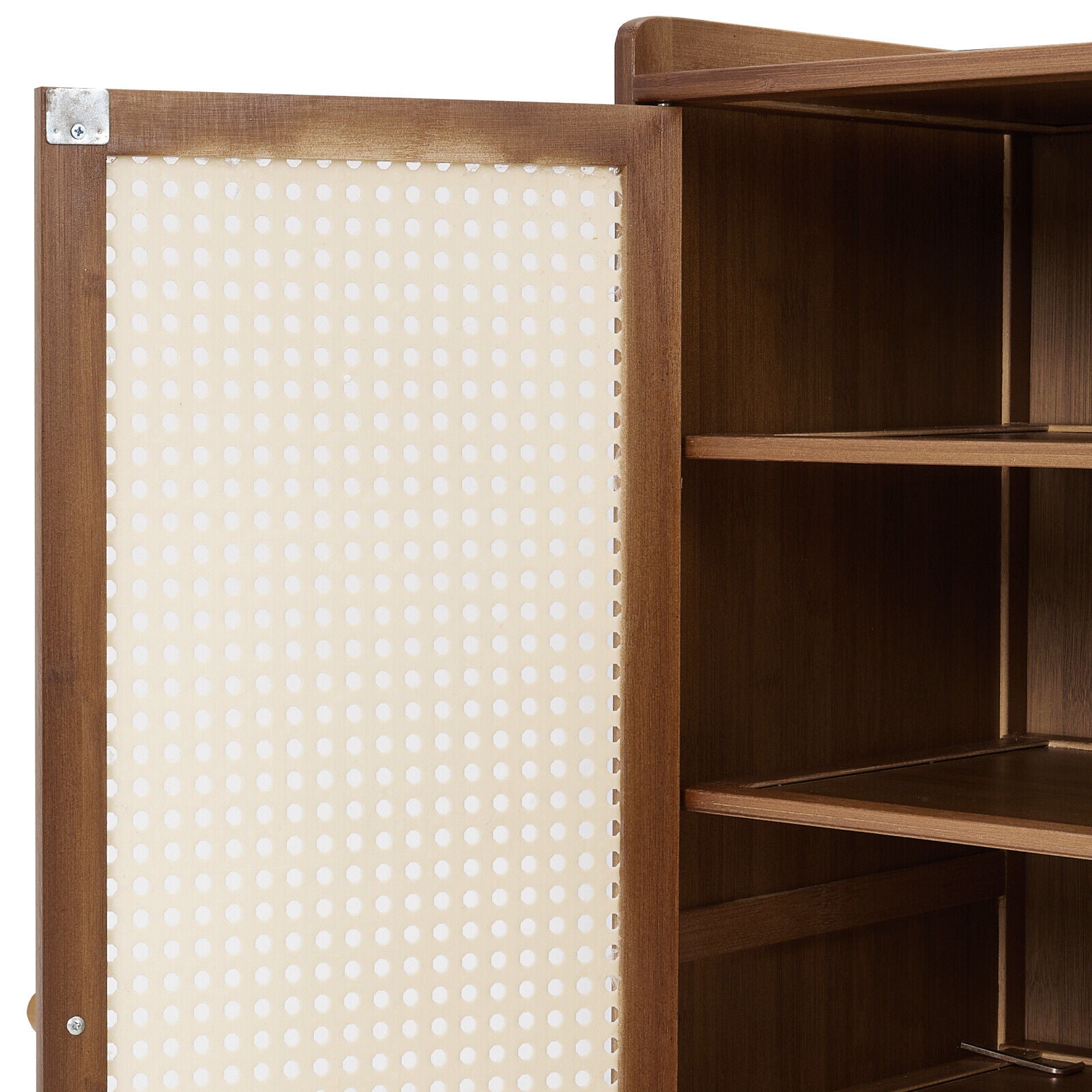 Large Free Stand 4 Door Shoe Cabinet Storage Cupboard Footwear Stand Rack Rattan