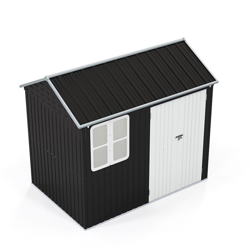 LARGE Galvanised Metal Garden Shed Apex Pent Roof Window Storage and 2 Doors