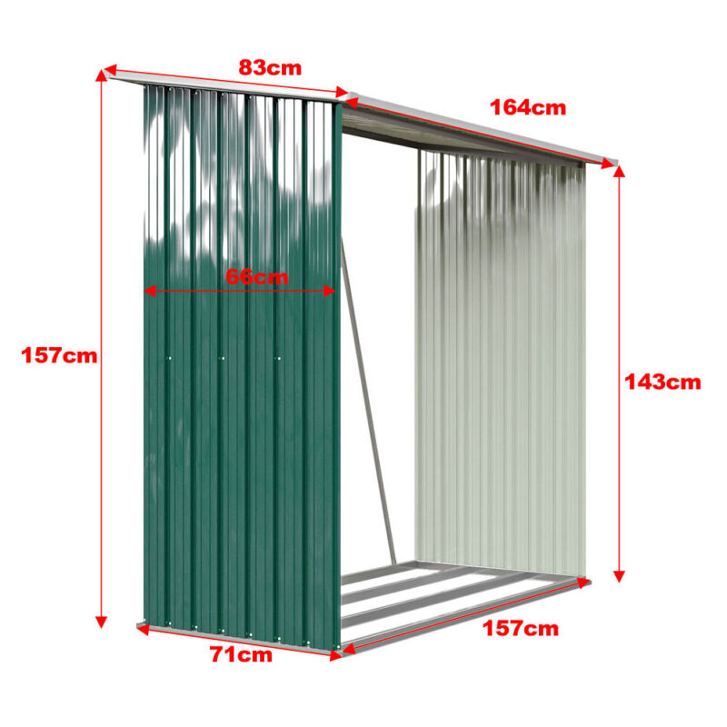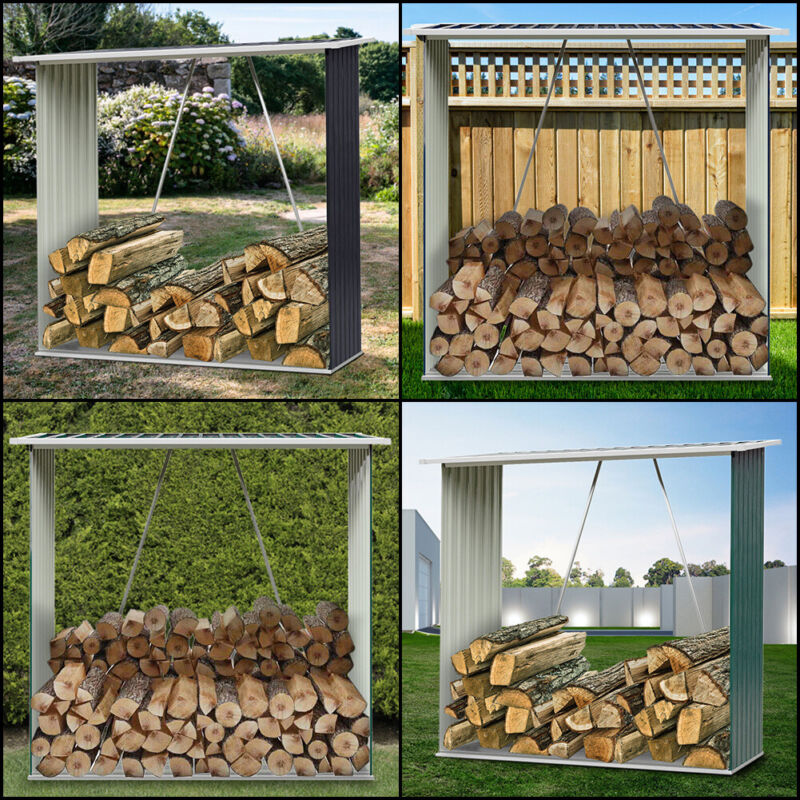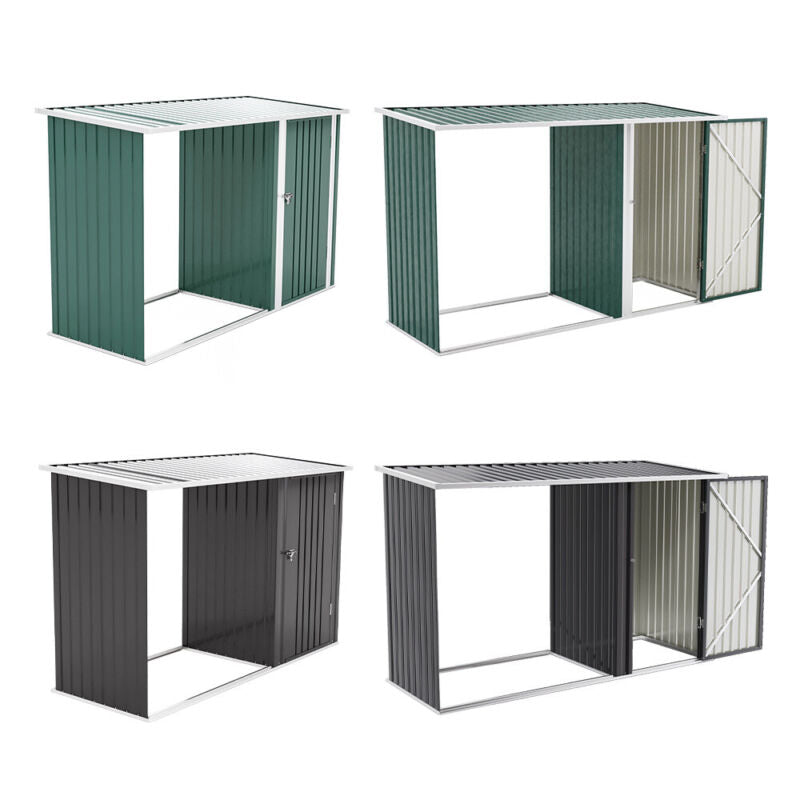 Large Galvanised Steel Garden Shed Metal Waterproof Pent Roof Firewood Log Rack