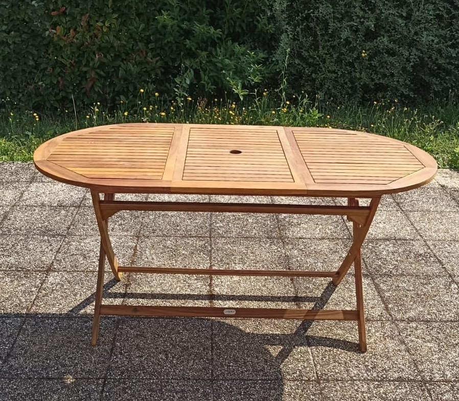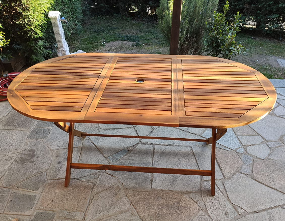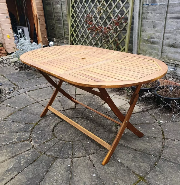 Large Garden Dining Table Solid Wood Folding Rustic Wooden Oval Patio Furniture