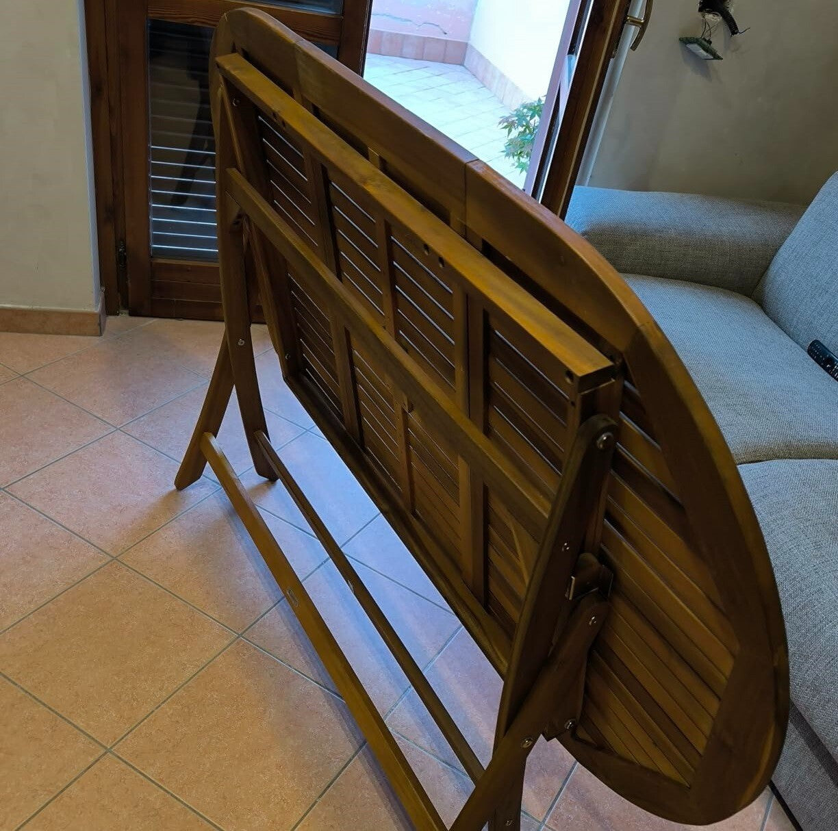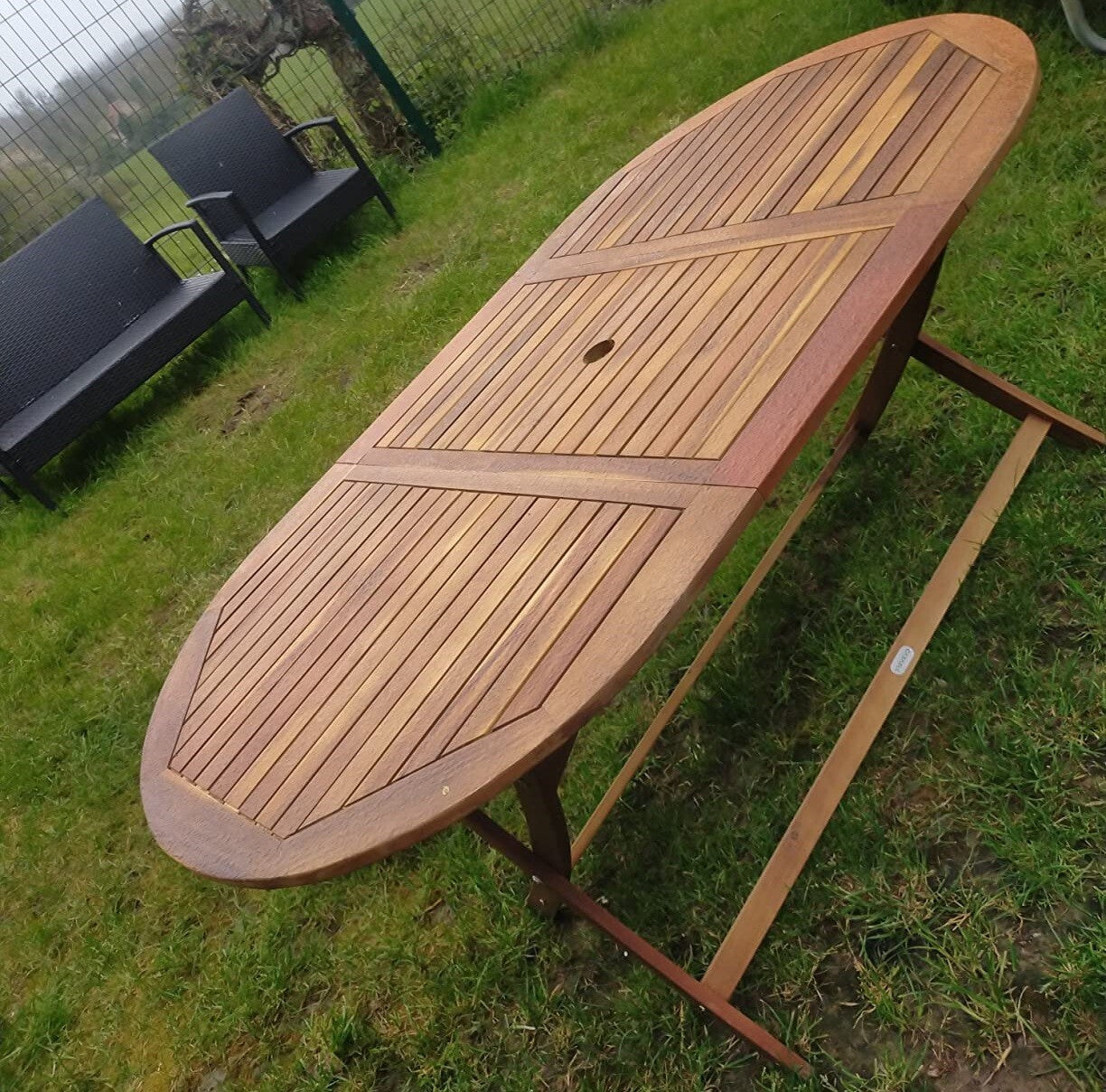 Large Garden Dining Table Wooden Patio Folding Furniture W/ Umbrella Hole 160cm