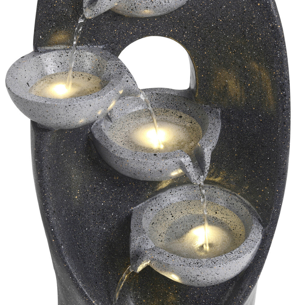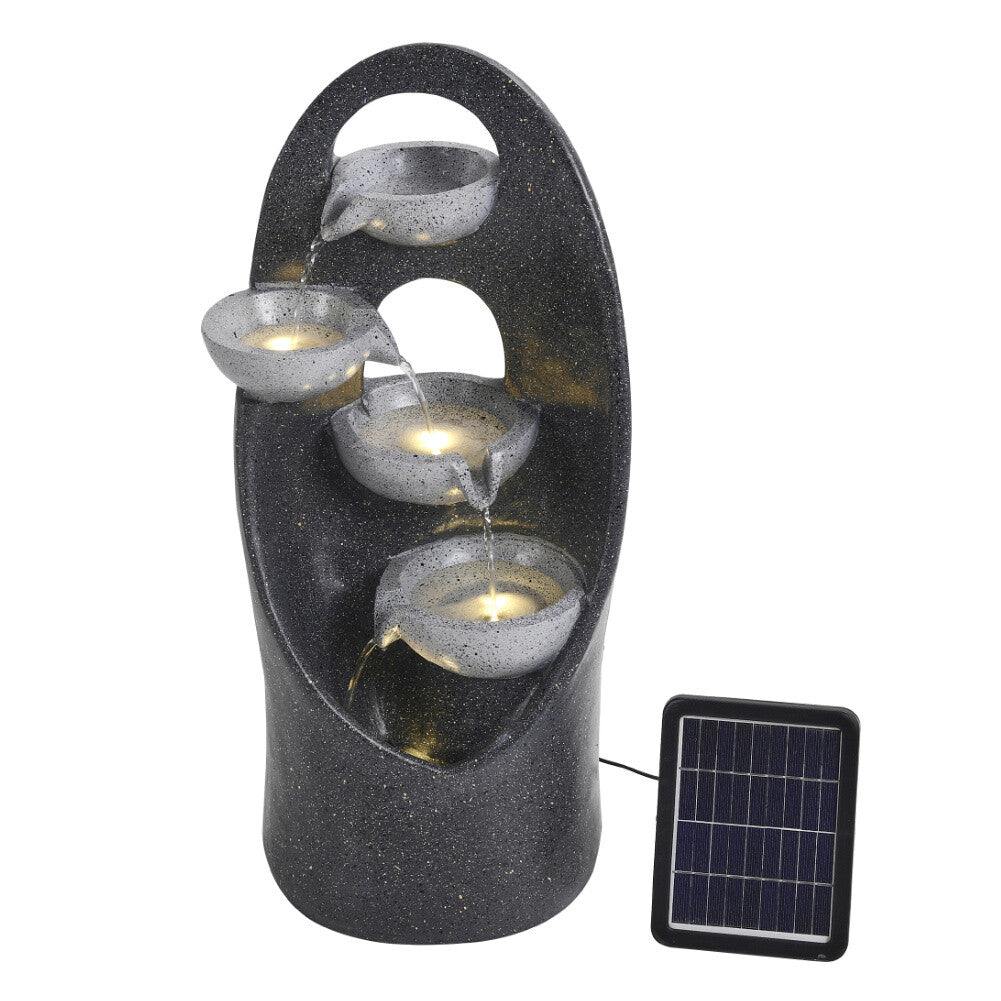 Large Garden Outdoor Tiered Water Feature Solar LED Fountain Barrel Bowls 68cm