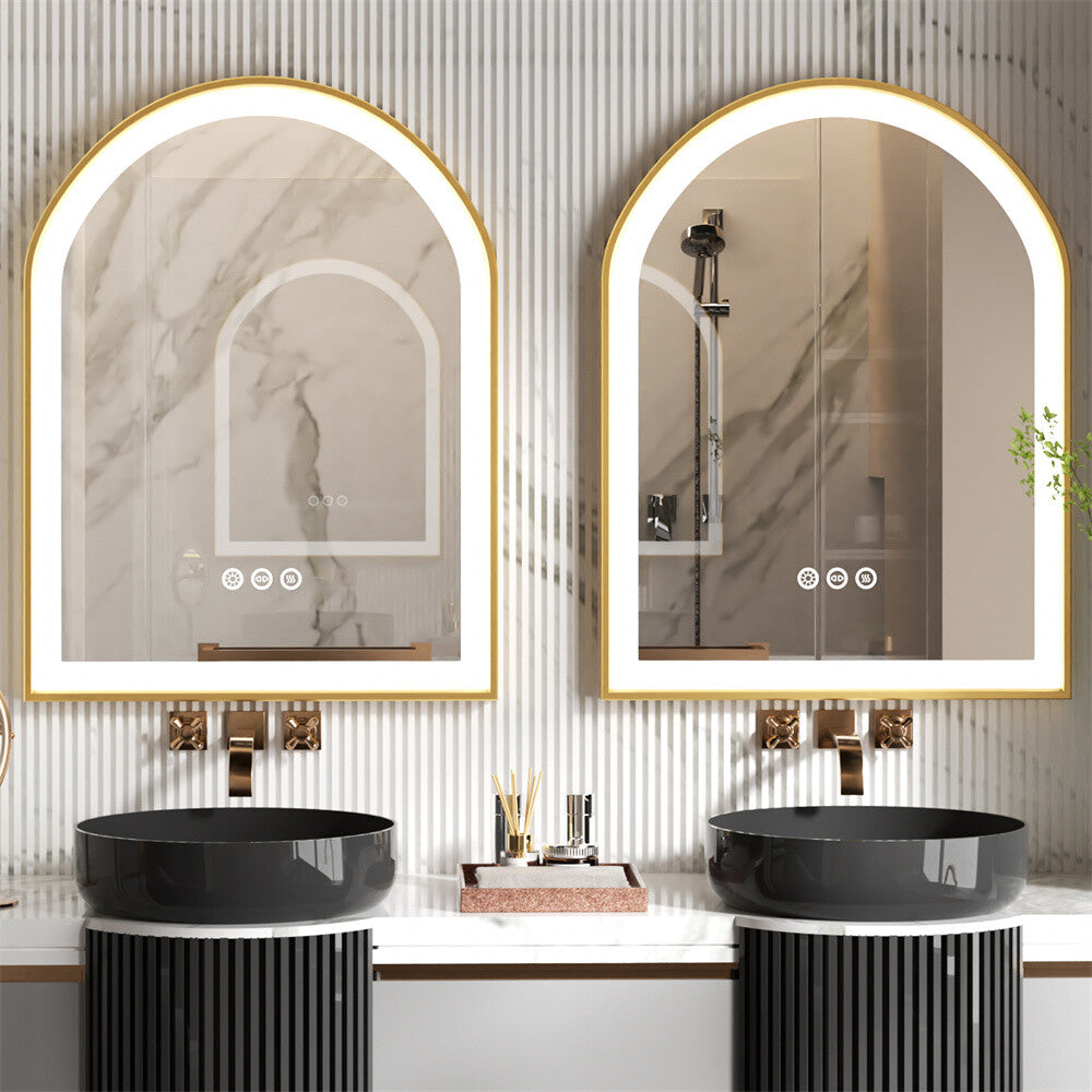 Large Gold LED Bathroom Mirror Salon Arch Wall Vanity Mirror Flicking-Free Defog