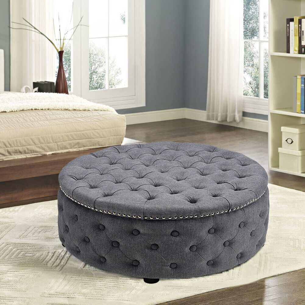 Large Grey Buttoned Chesterfield Coffee Table Footstool Footrest Seat Sofa Side