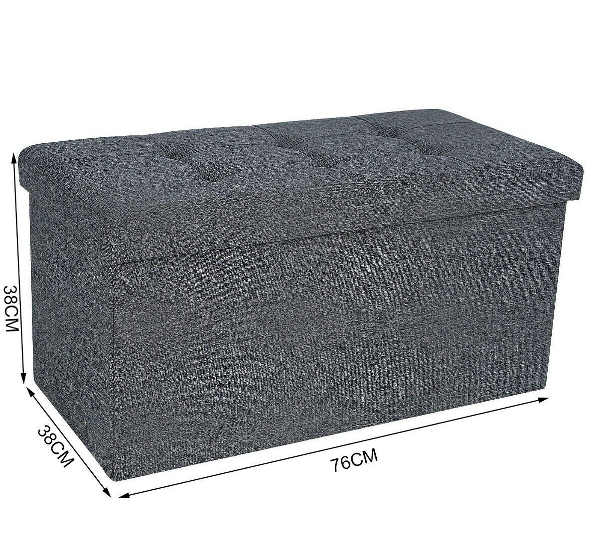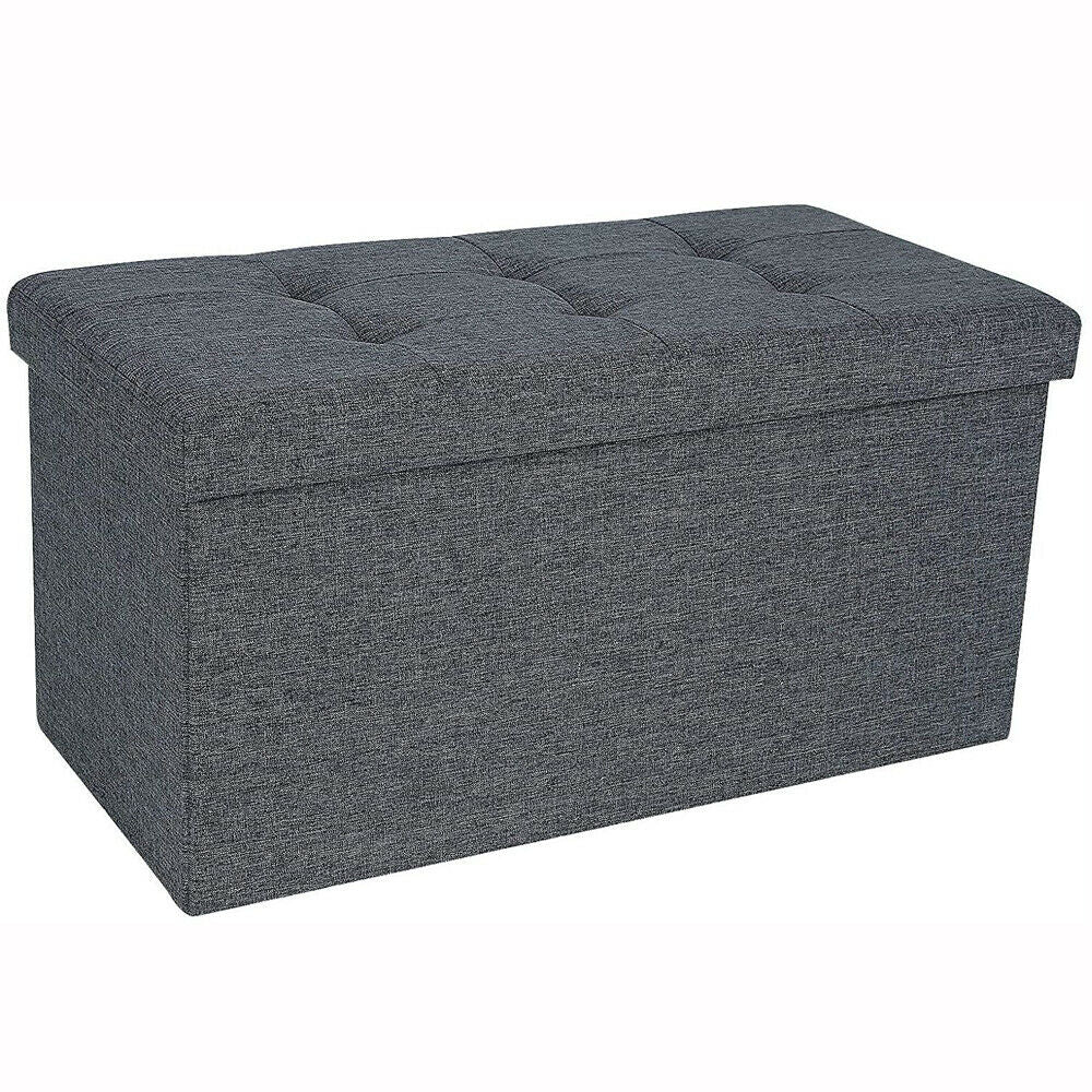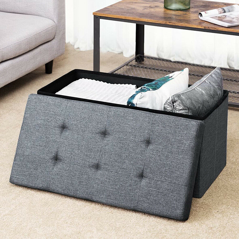 LARGE GREY FOLDING STORAGE OTTOMAN POUFFE FOOT STOOL STORAGE BOX SEAT