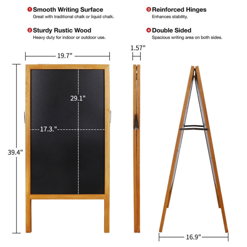 Large Handcrafted Wooden Blackboard Sturdy Standing Pavement Board A Frame Sign