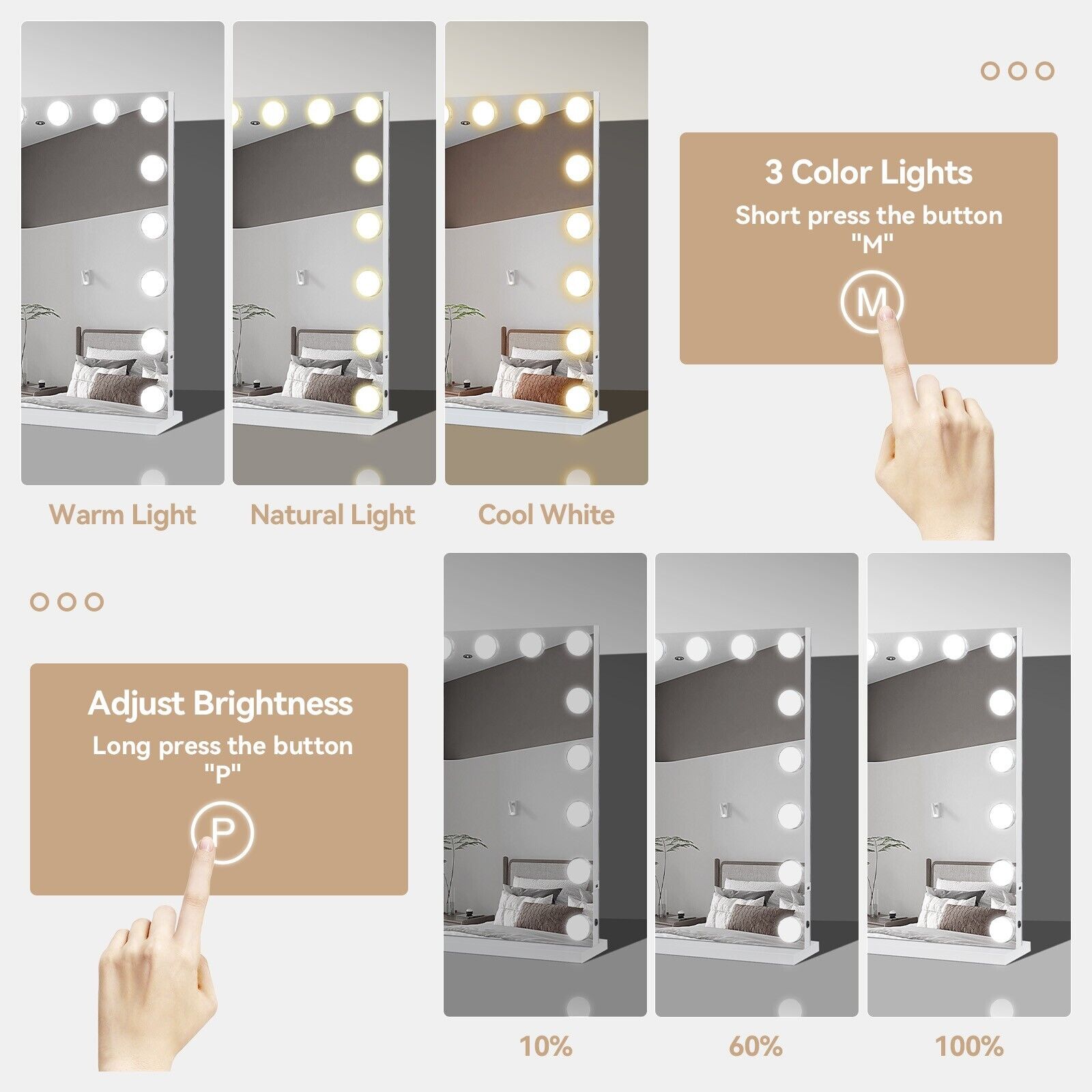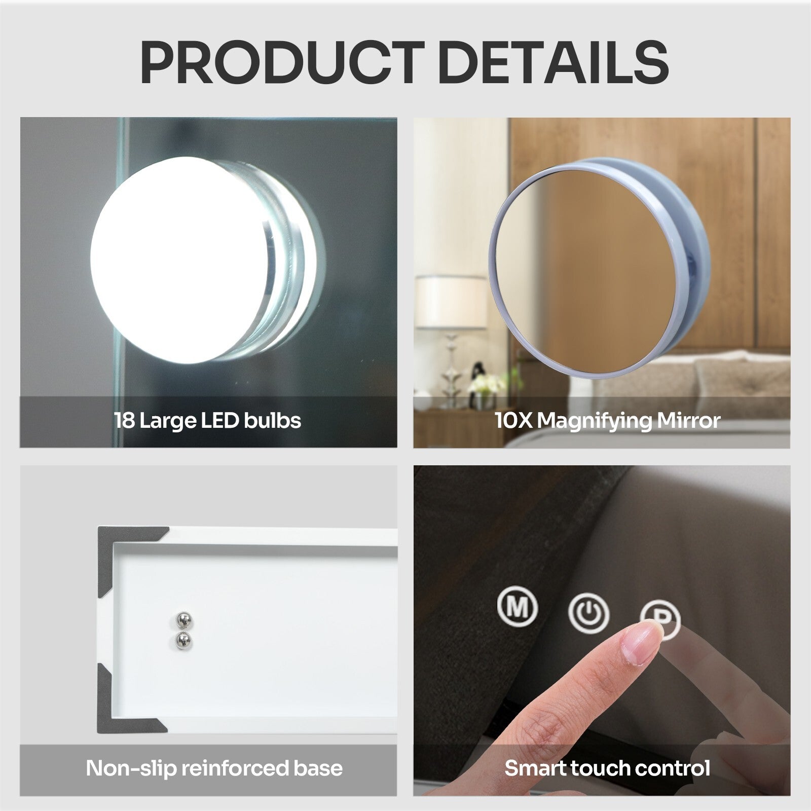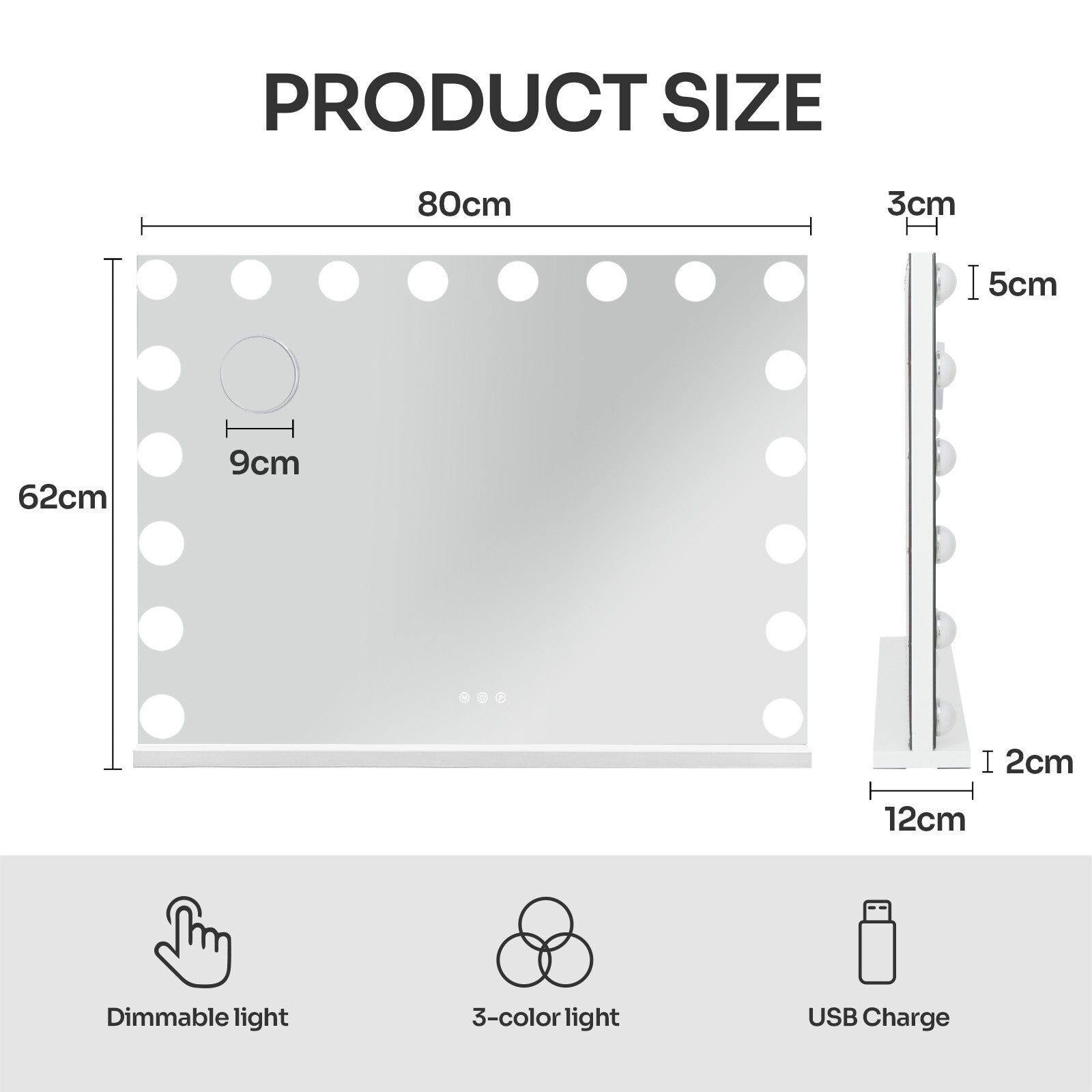 Large Hollywood Makeup Mirror Vanity Light Mirror 18 LED Bulbs 3 Modes Dimmable